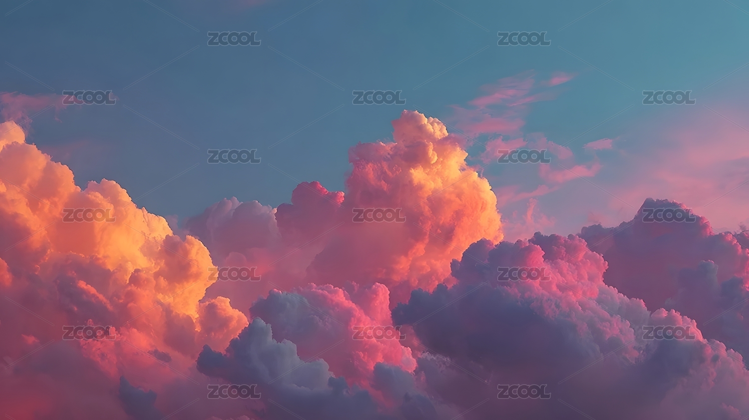 梦幻,天空,风景,卡通,插画,云,云朵,晚霞,黄昏,夕阳