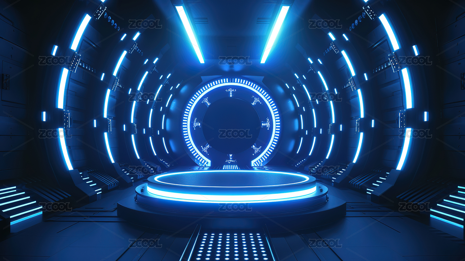 蓝色霓虹圆形科技空间