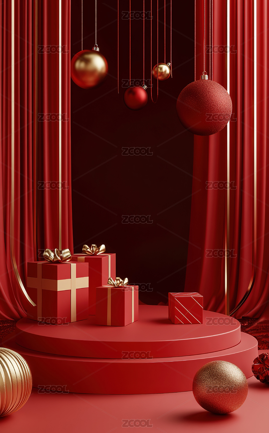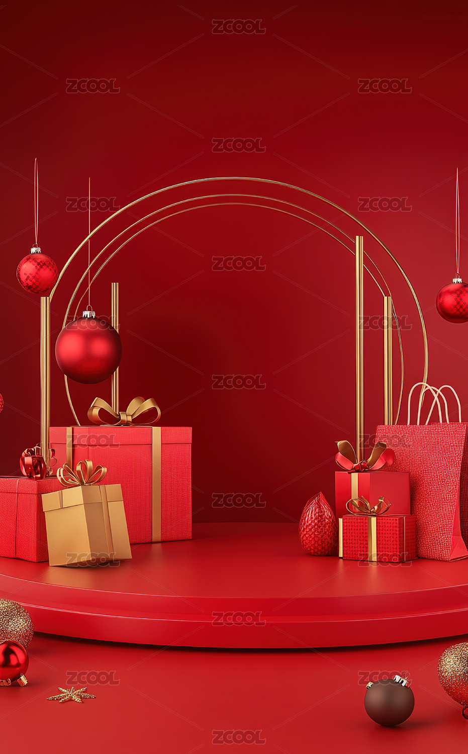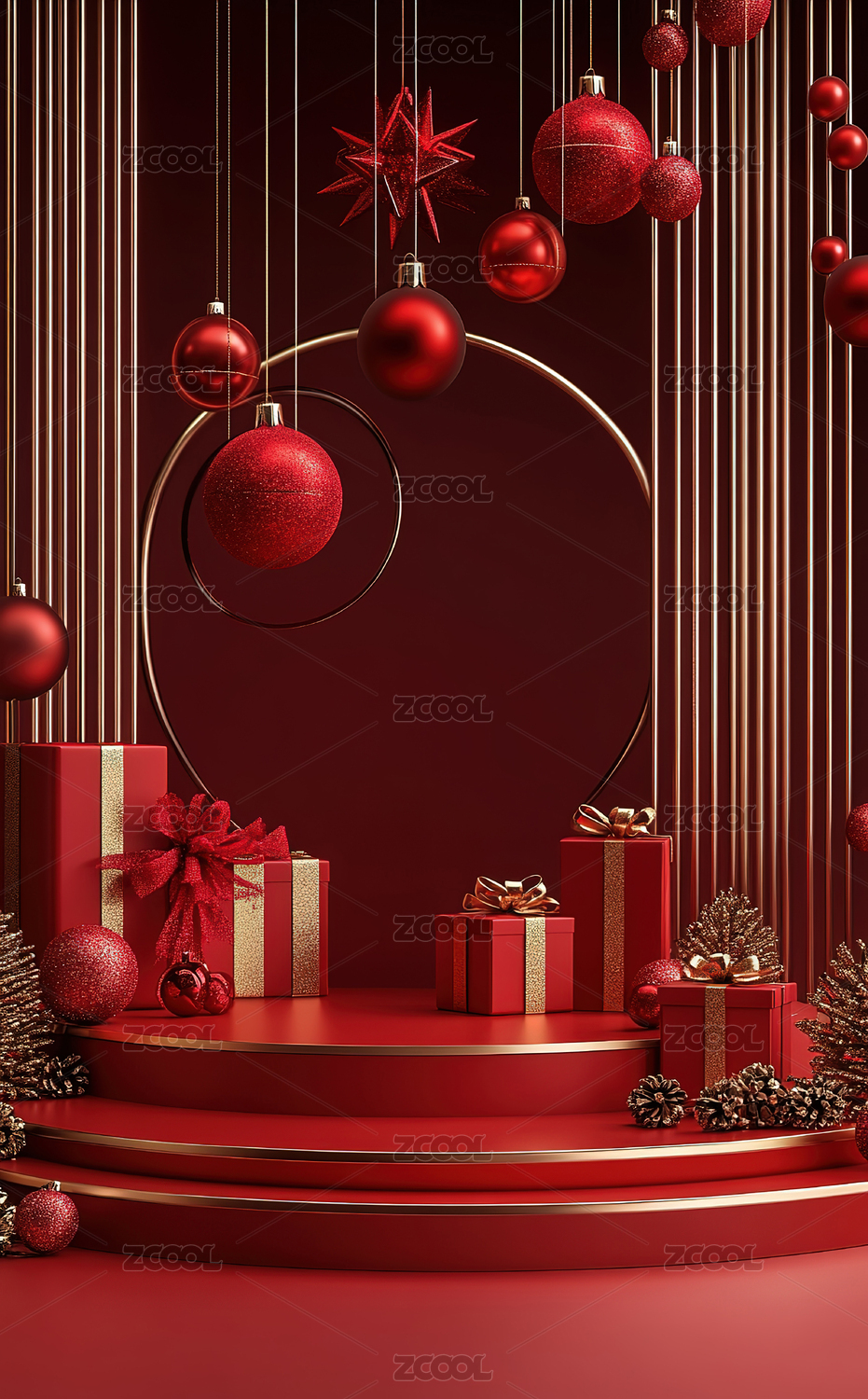 红色圣诞礼品堆叠场景