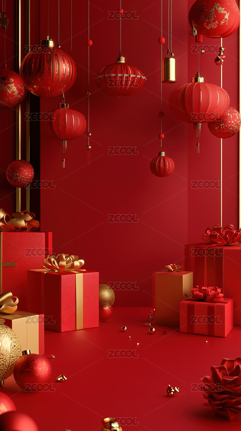 春节新年节日红色礼物礼盒背景