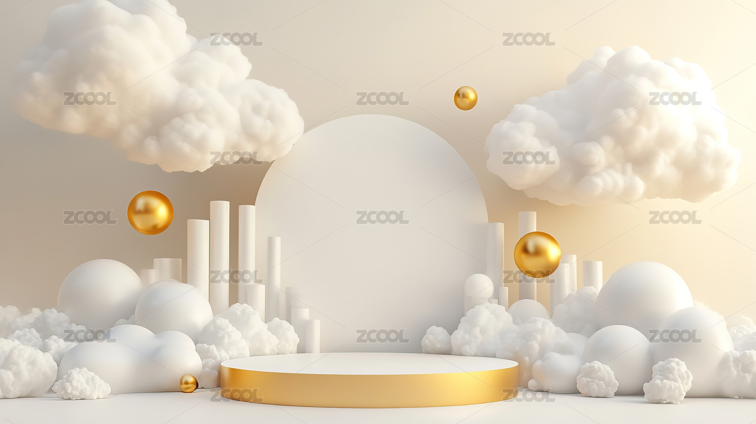 淡黄色抽象云彩电商3D展台