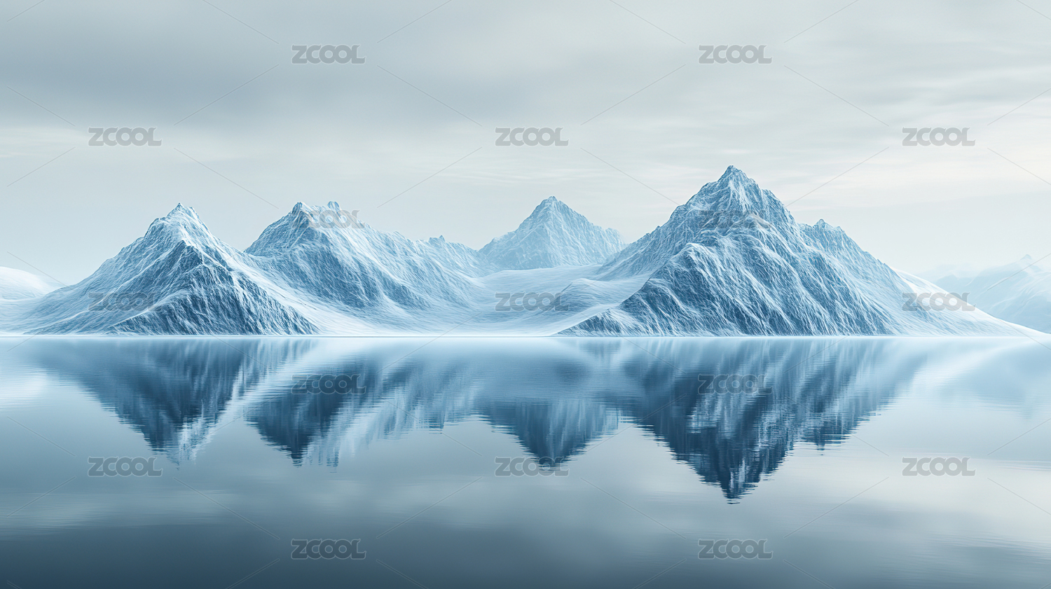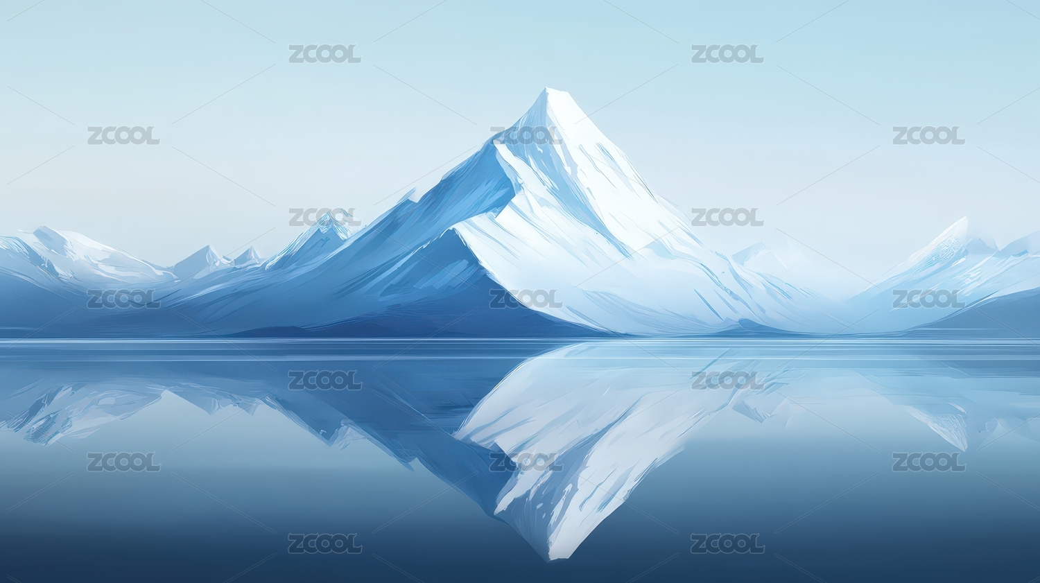 冰雪山峰倒影如画