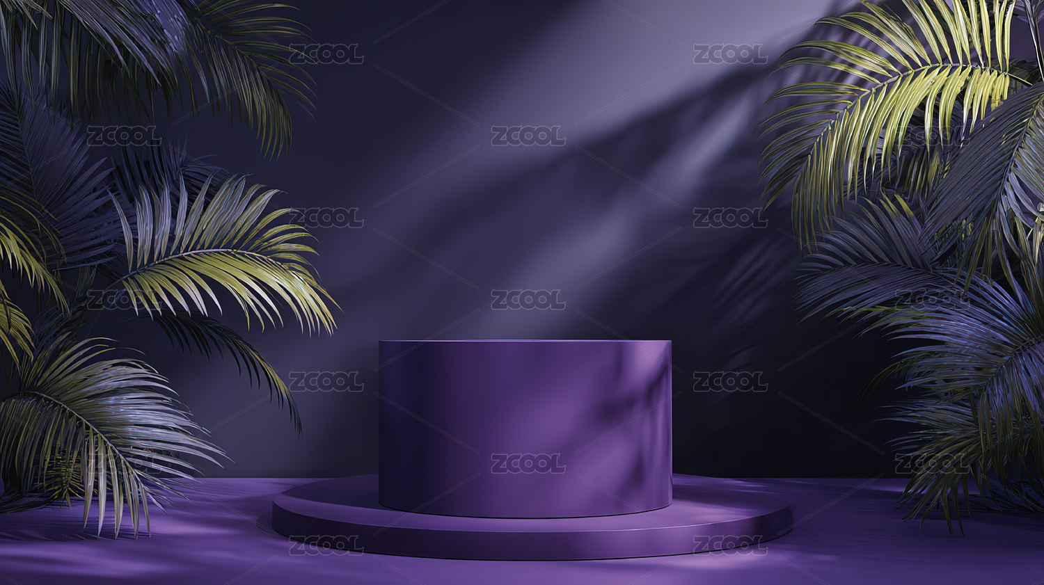 紫色背景下的棕榈叶特写镜头