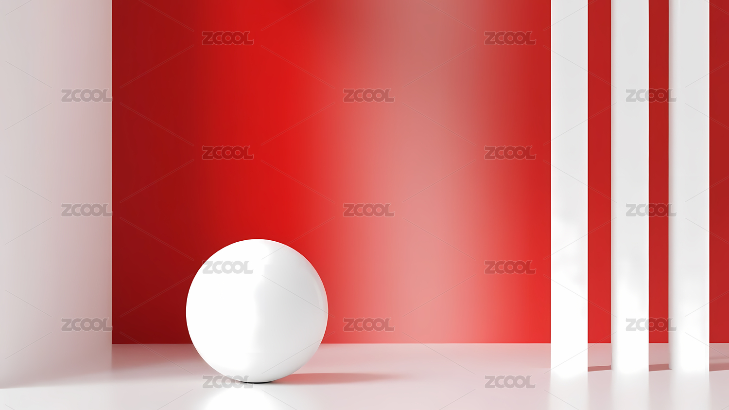 白色球体柱子红色背景