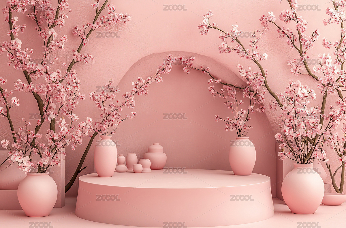 粉色樱花展台