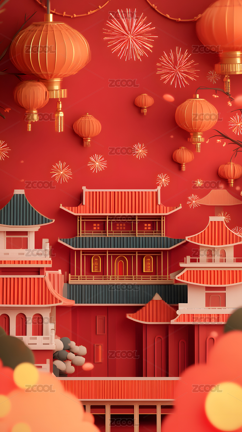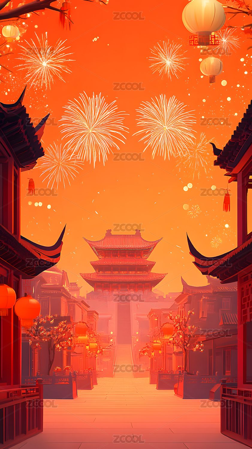 春节,节日,新年,灯笼,花灯,烟花,红色,中秋节,元宵节,国庆节