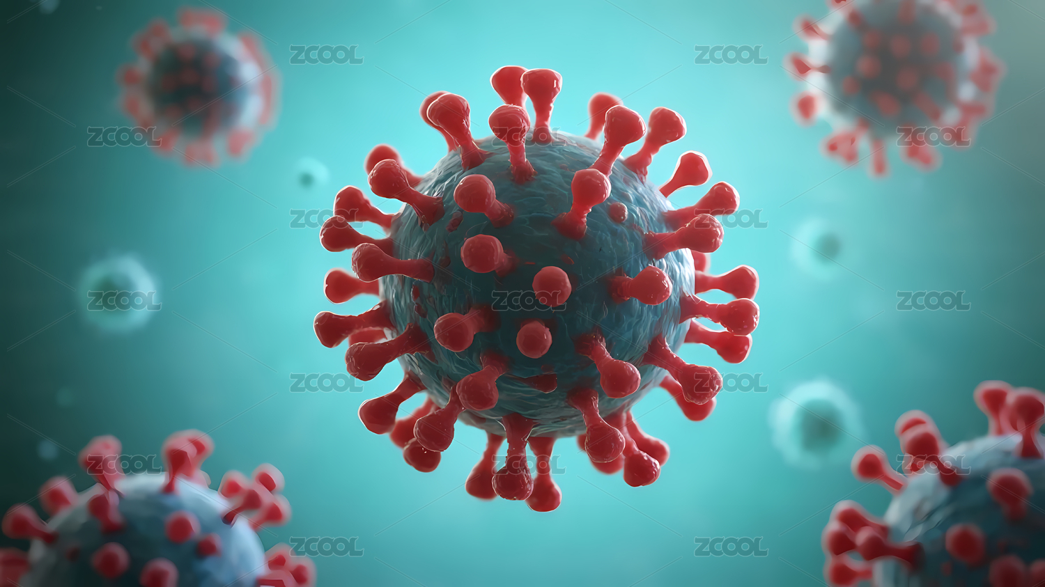 浅绿背景的蓝红病毒粒