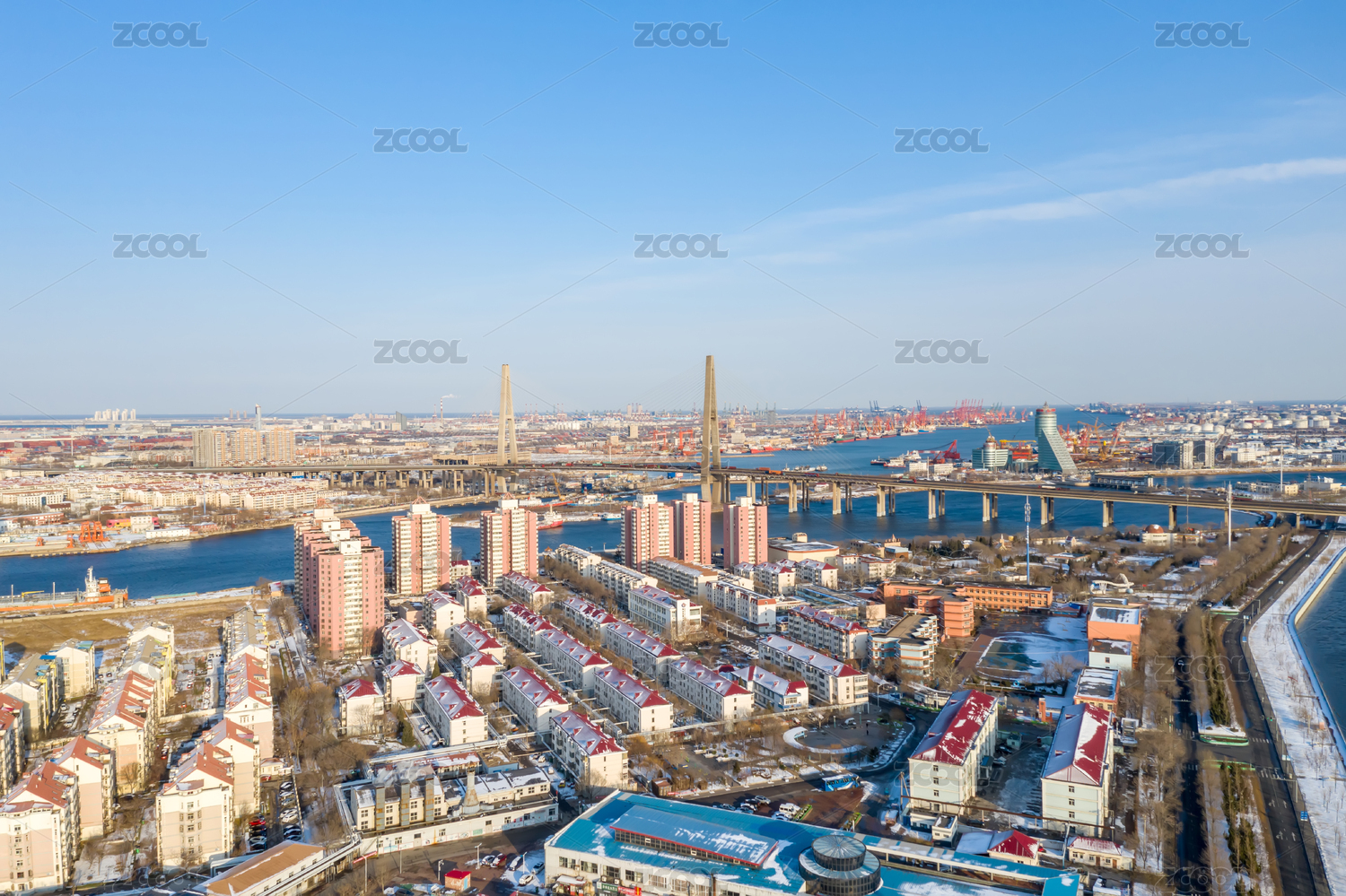 雪景,冬季,雪,航拍,天津滨海新区,天际线,繁华,建筑,城市