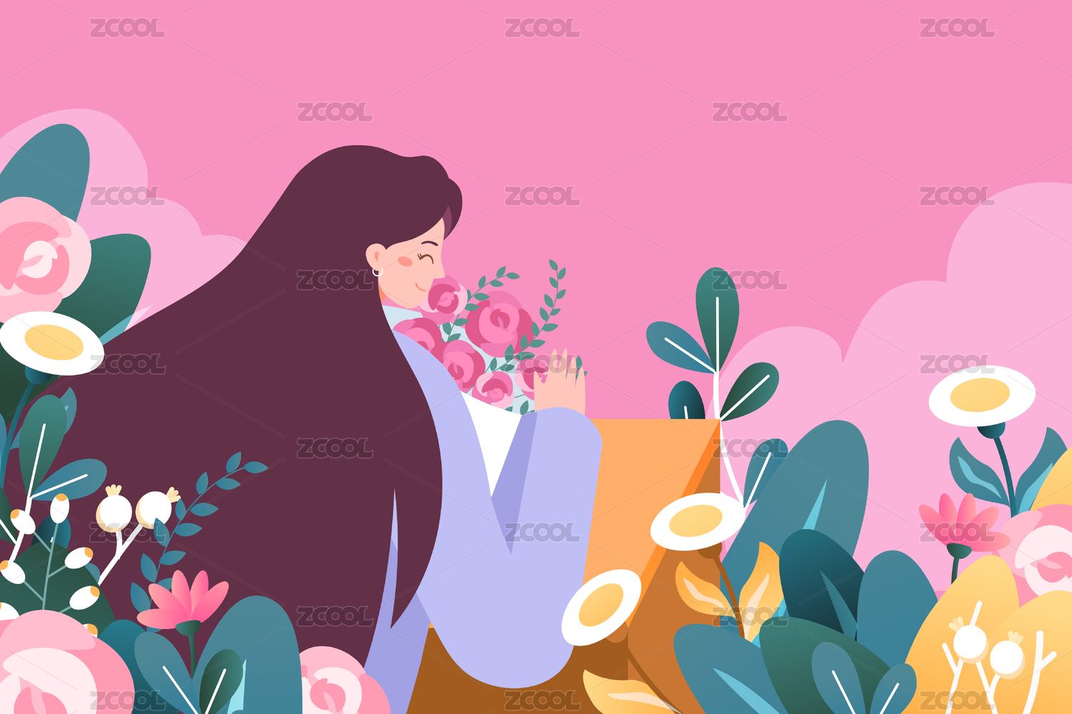 妇女节鲜花背景插画
