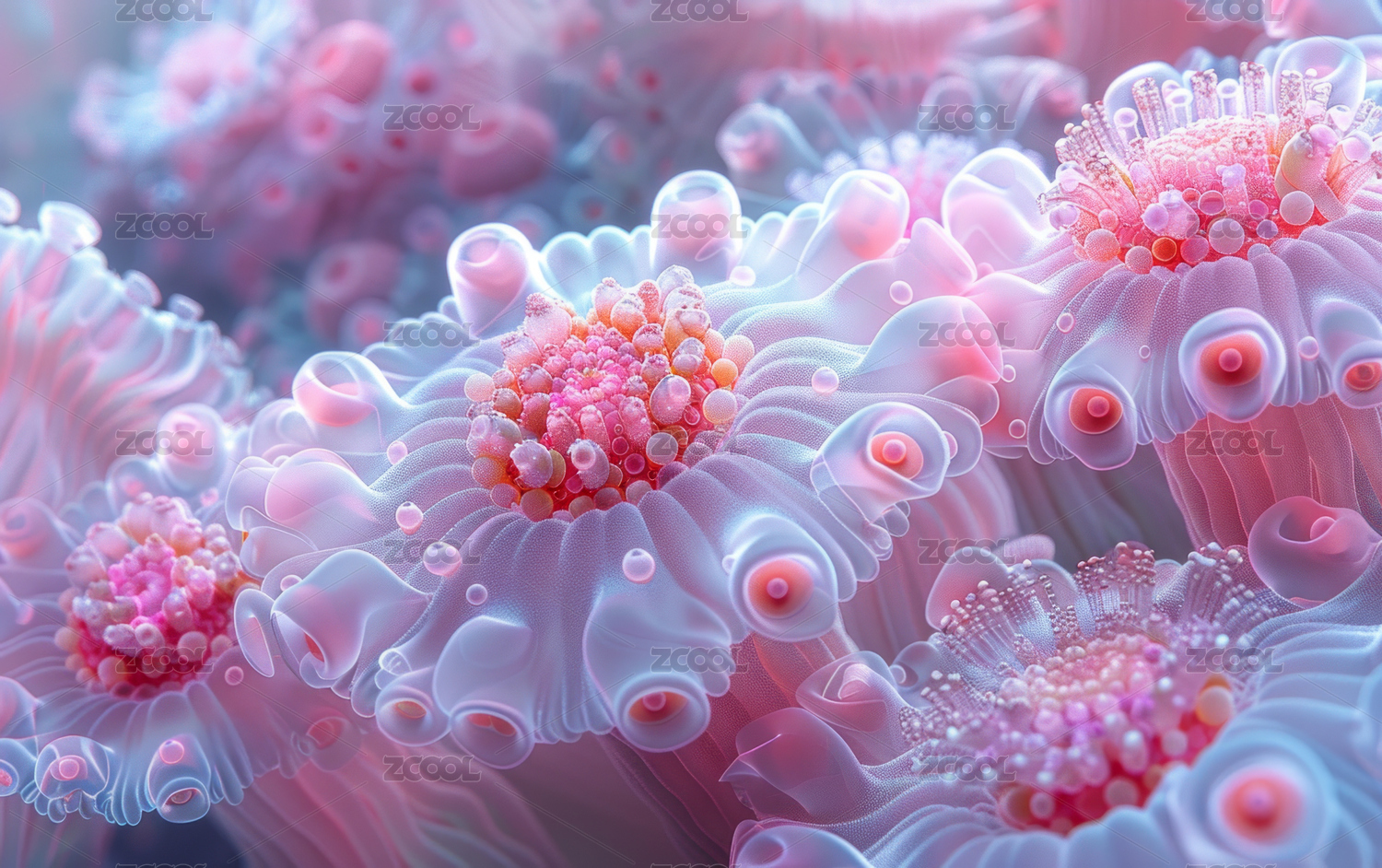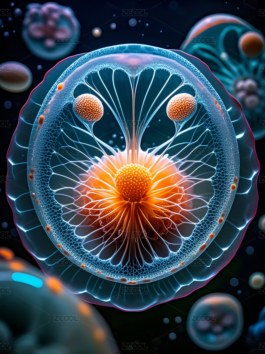 显微镜下细菌病毒特写海洋生物科学概念插图