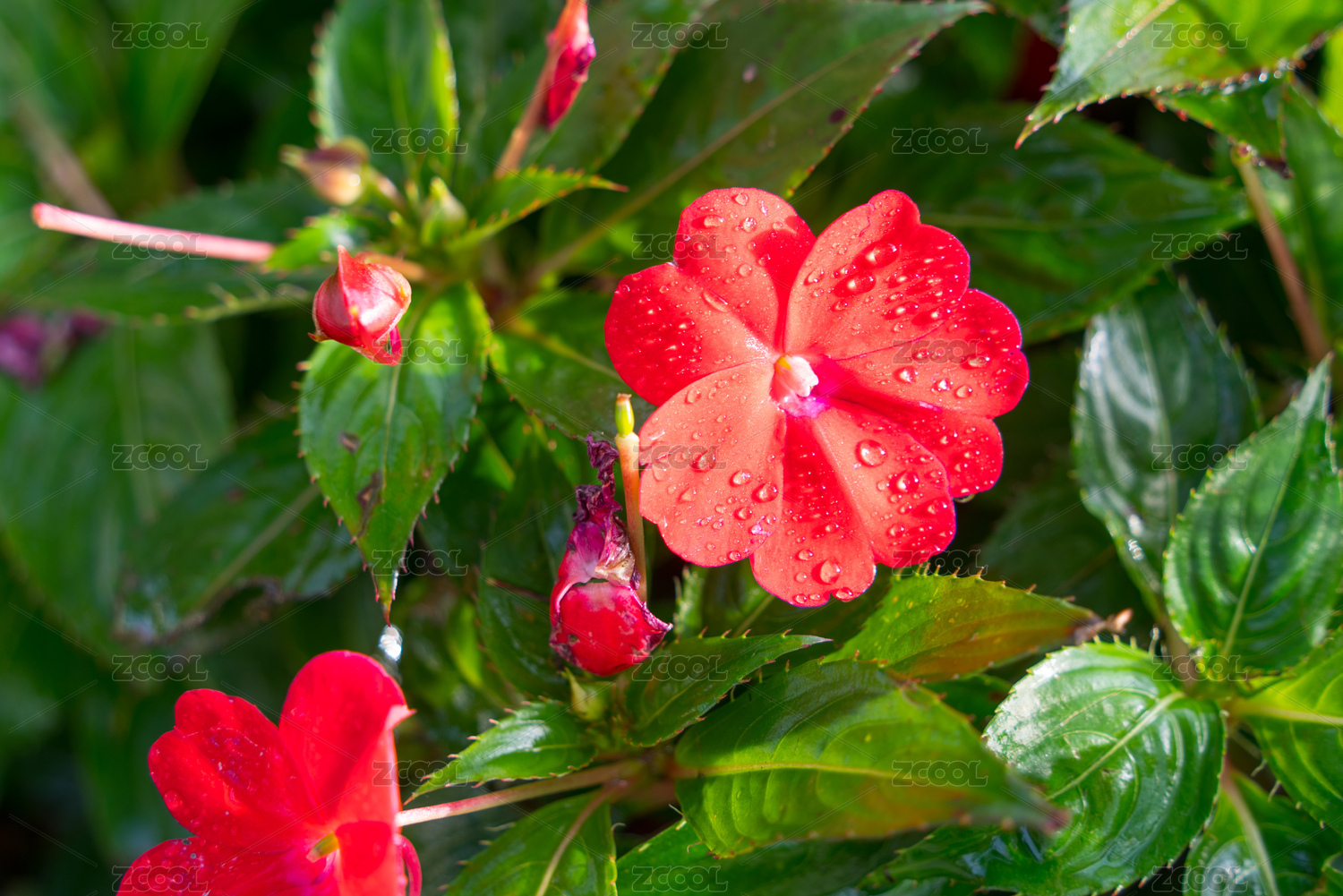 多色凤仙花盛开在花丛