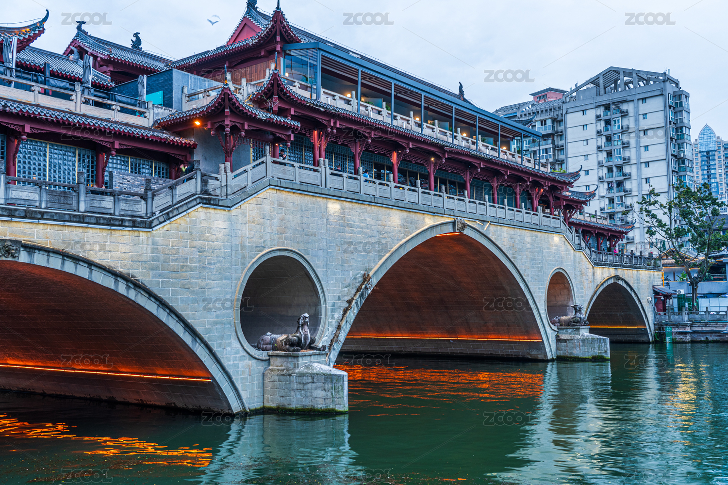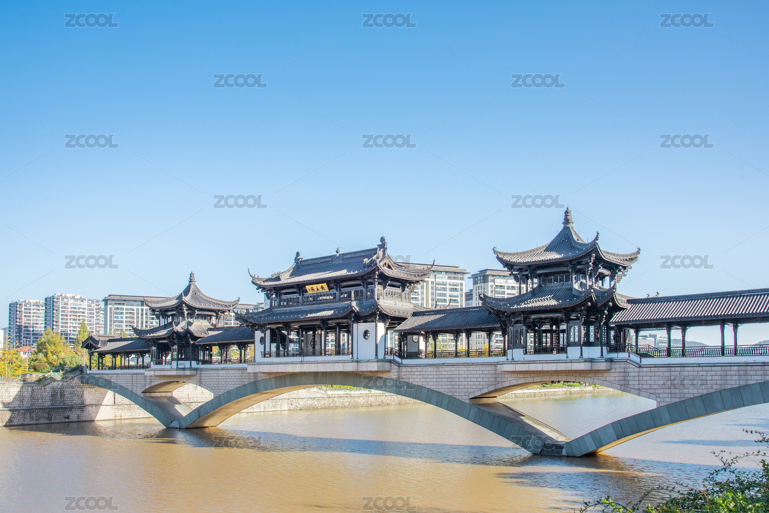 四川成都市跨锦江的中式风雨桥 安顺廊桥