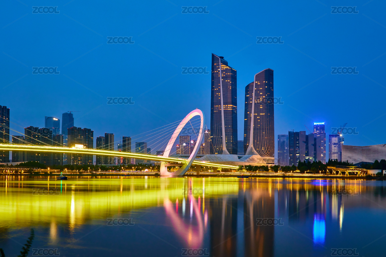 中国,南京,南京之眼步行桥,建邺区,桥梁,南京国际青年文化中心,青奥中心,天际线,城市,夜晚