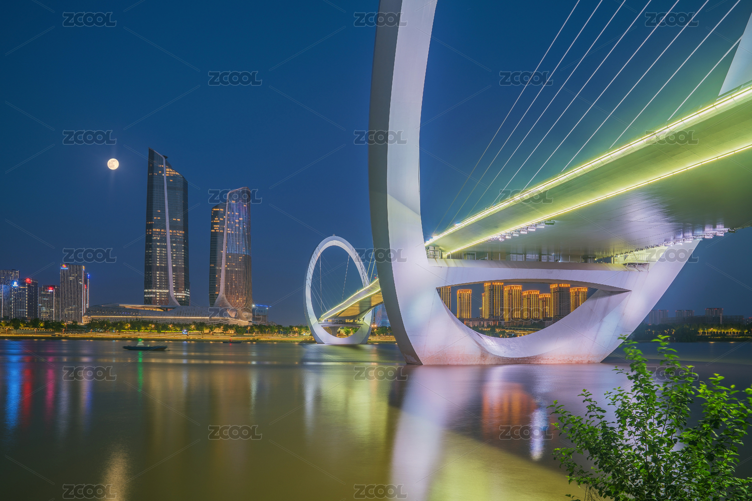 南京眼步行桥和保利大剧院夜景