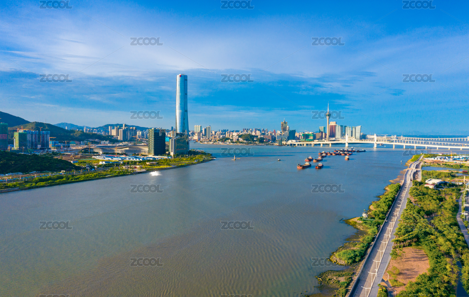 珠海,澳门,海湾,城市,风光,航拍,建筑,观光塔,西湾大桥,桥梁