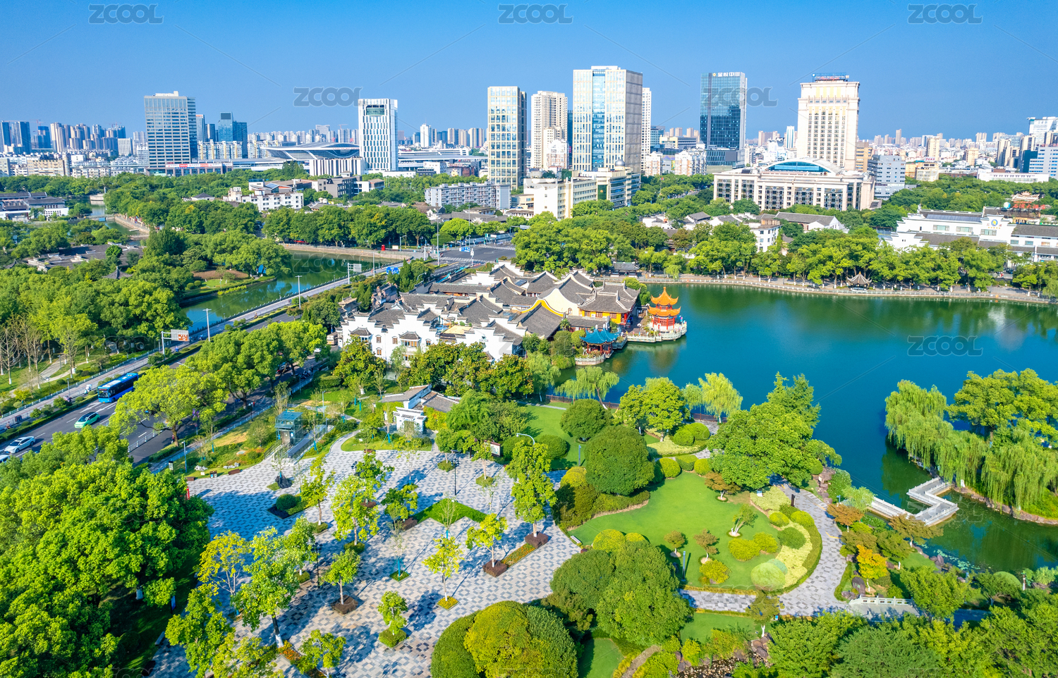 江西南昌八一公园东湖百花洲城市风光天际线