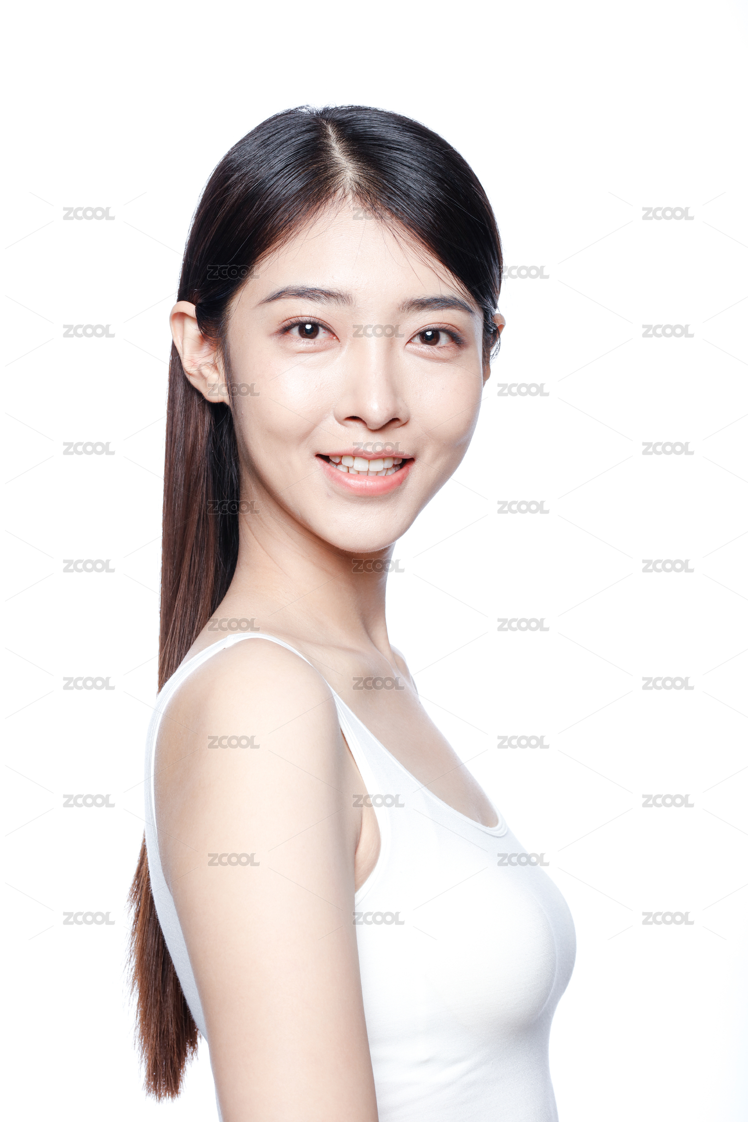 年轻漂亮的亚洲美女白色背景半身肖像