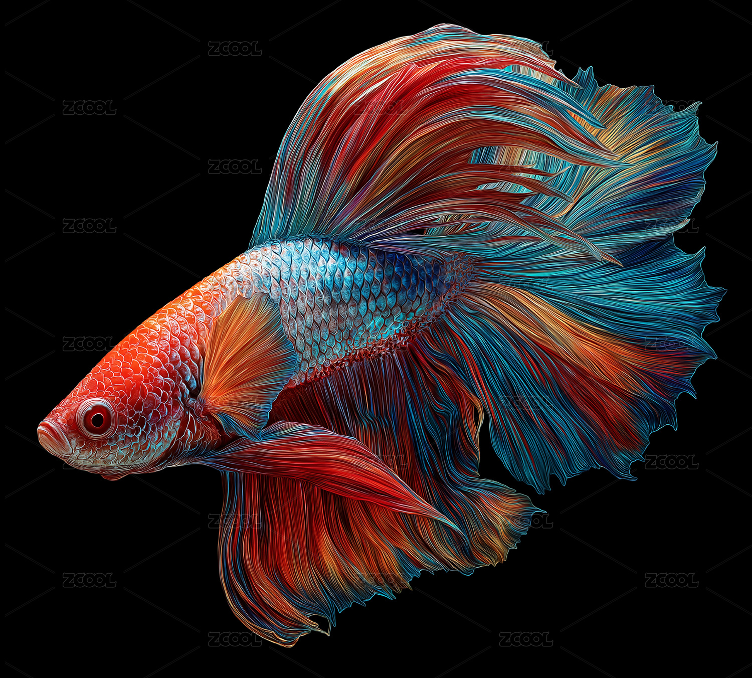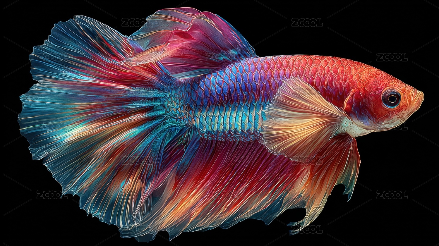 五彩斗鱼特写摄影装饰艺术设计素材