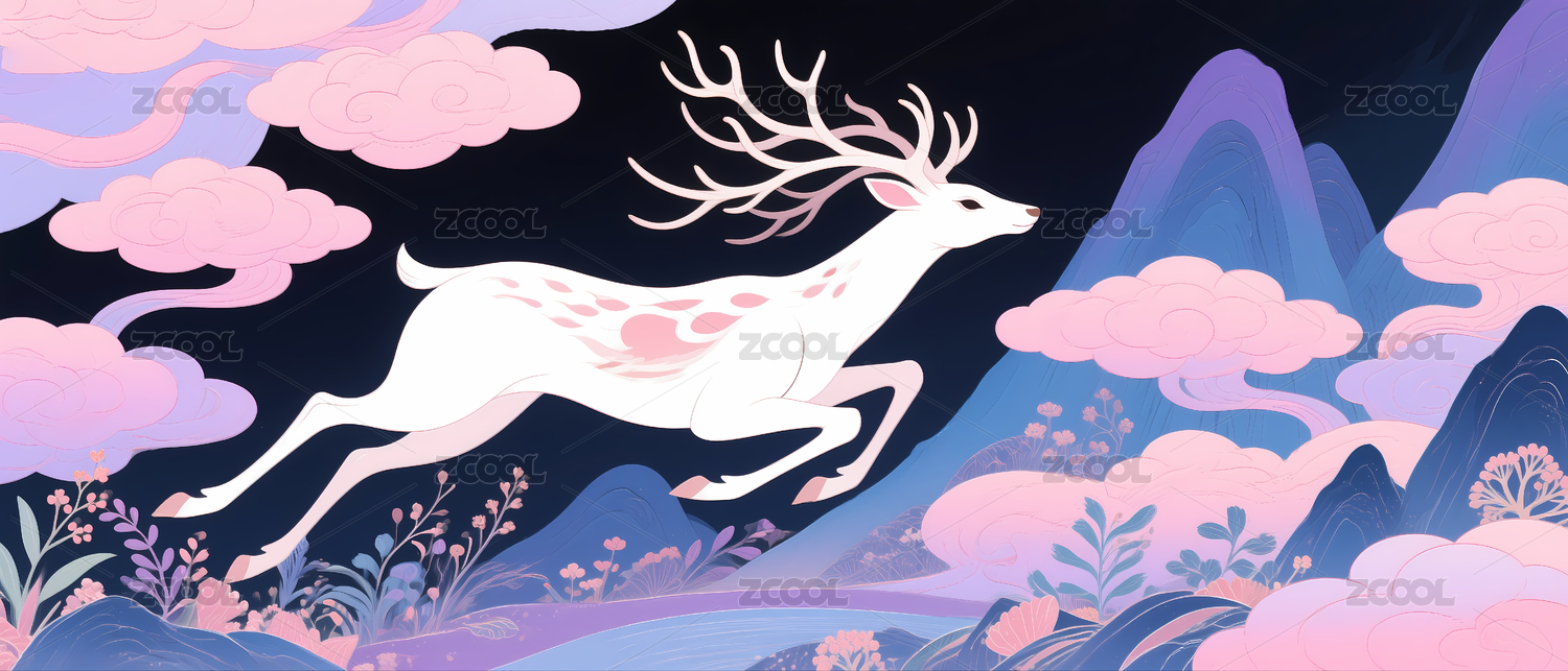 敦煌飞天九色鹿脚踏祥云国潮国风古风插画