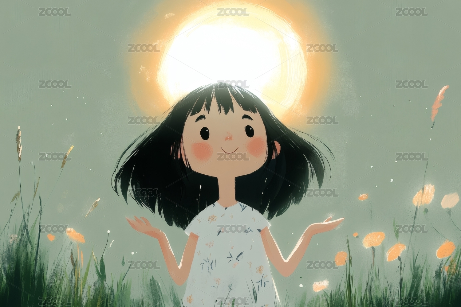 女孩,小女孩,闭眼,夜晚,花,花朵,草丛,花丛,可爱,壁纸