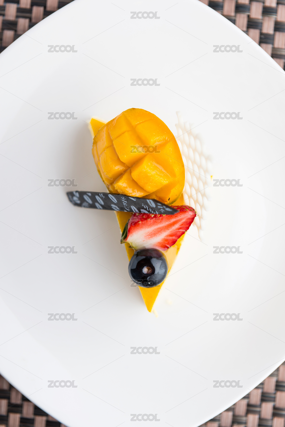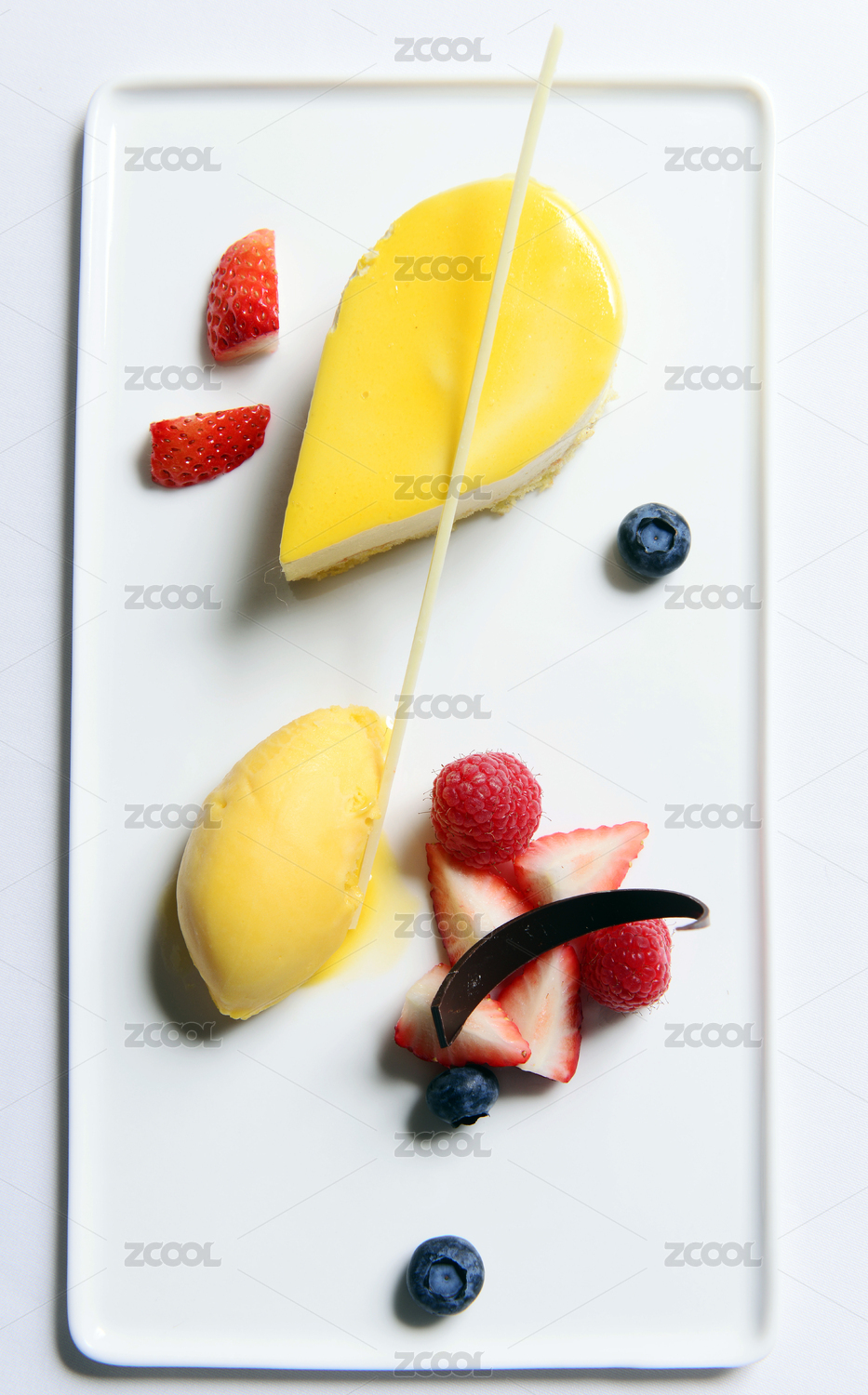 美味的下午茶蓝莓蛋糕放在黄色的碟子中