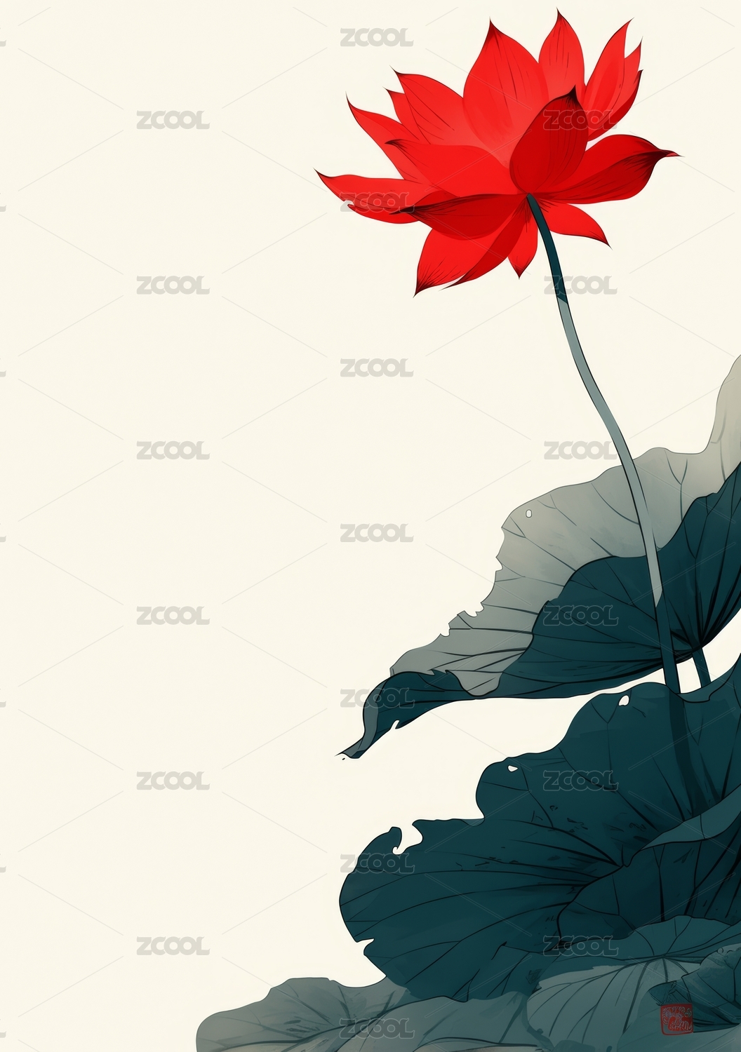 国潮荷花插画