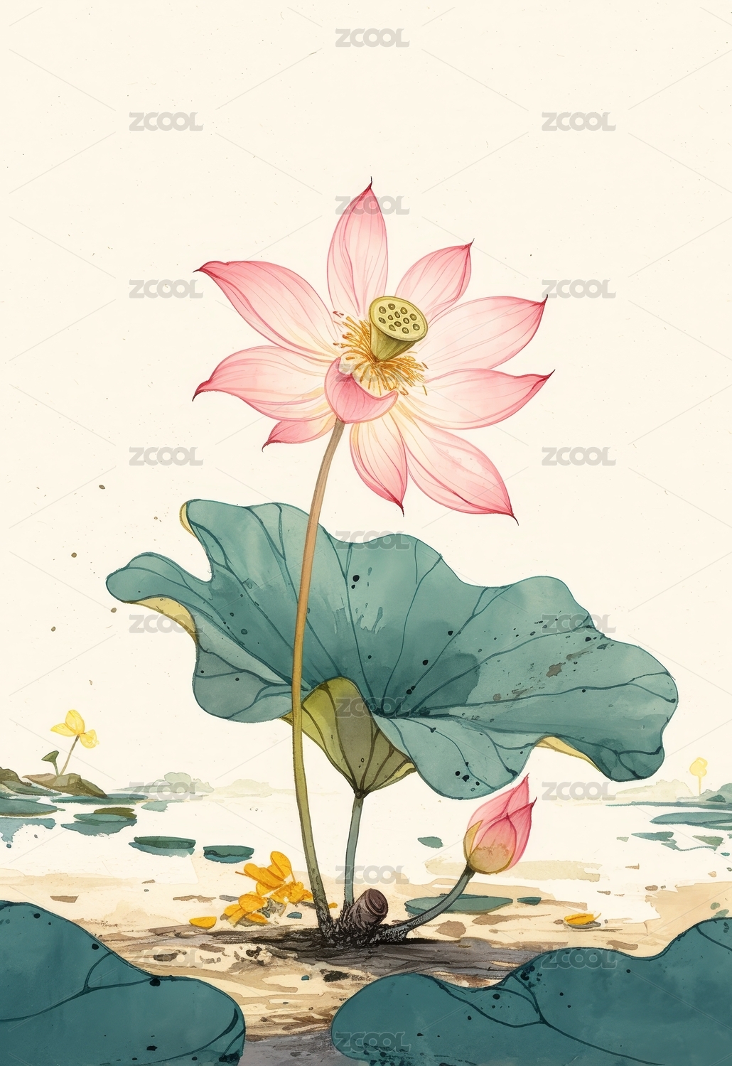 荷花壁纸插画插图