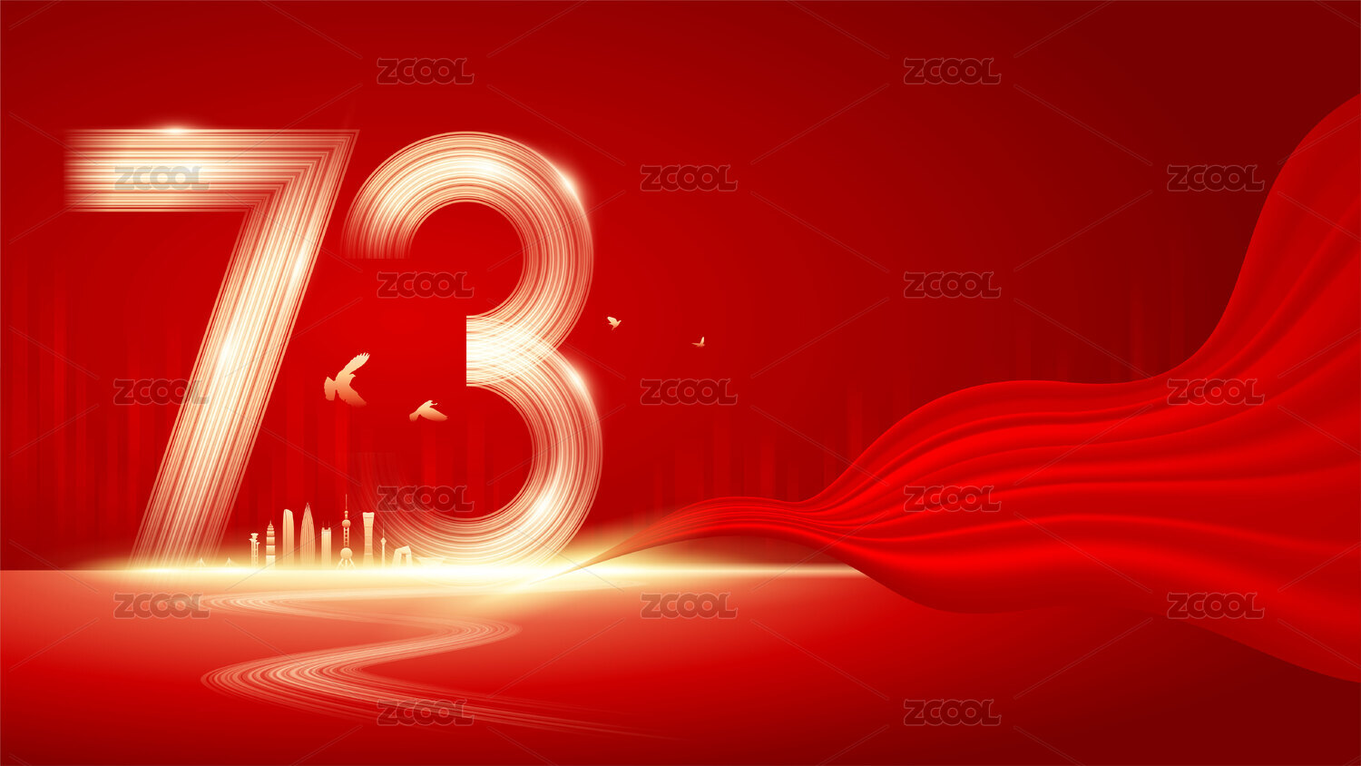 插画,红绸,星光,粒子,道路,百年,庆祝,喜庆,周年,背景