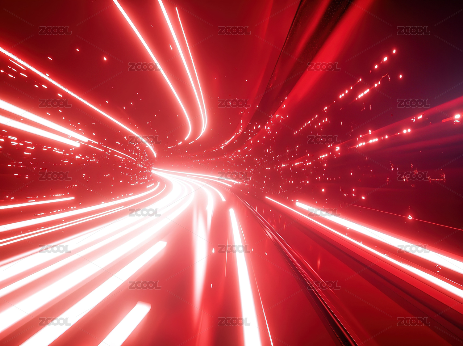 红色光线抽象设计,高速运动视觉效果