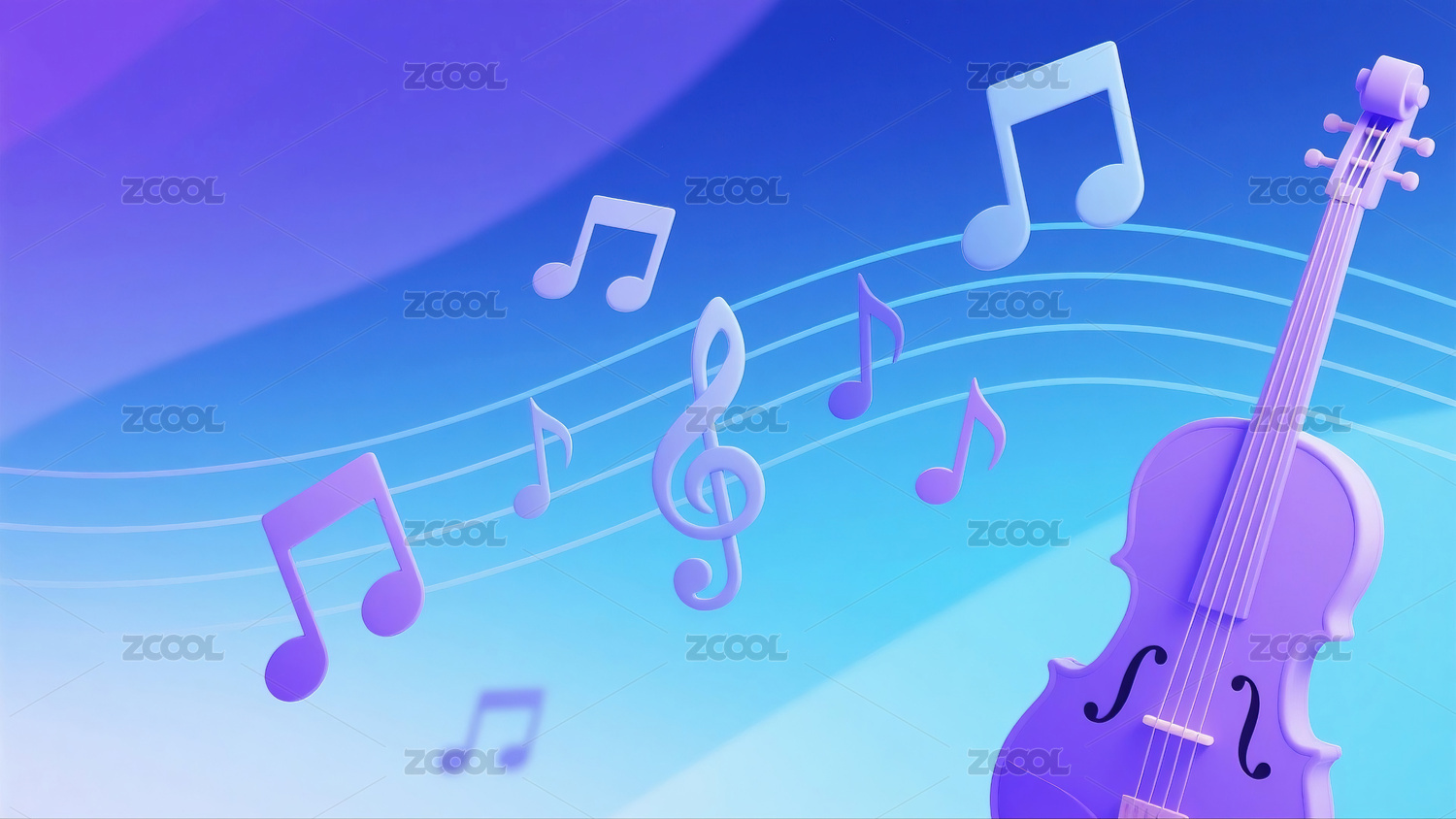 粉蓝渐变背景与蓝色音符波浪线