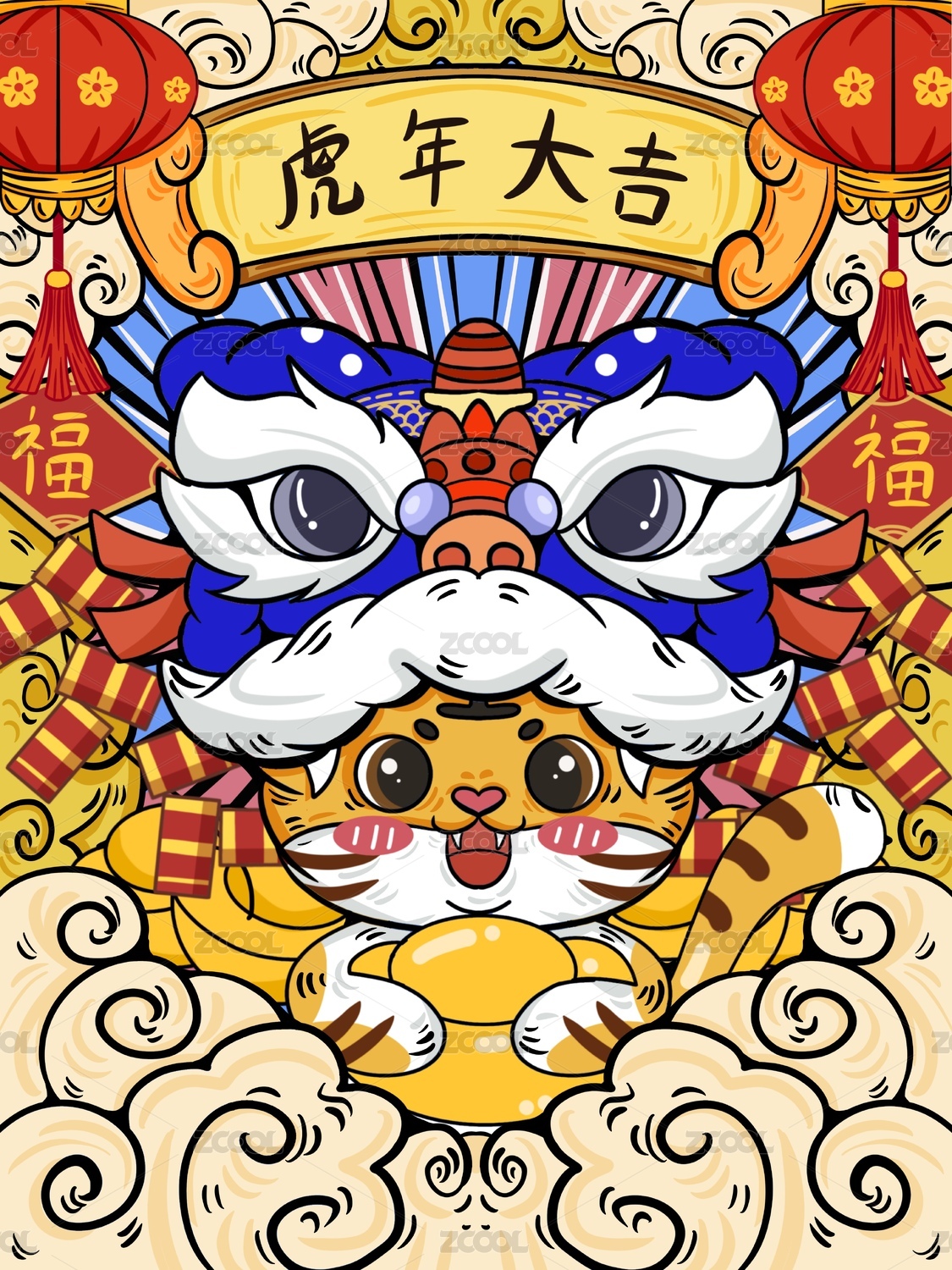 虎年国潮矢量插画