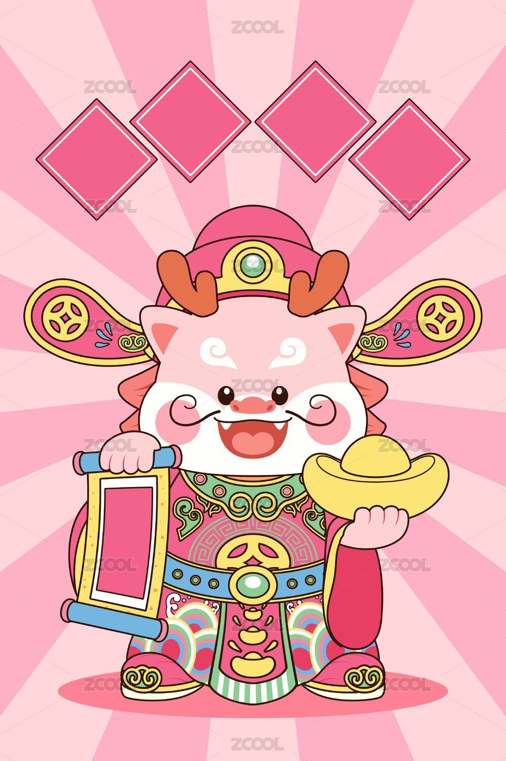 可爱迎财神龙年插画