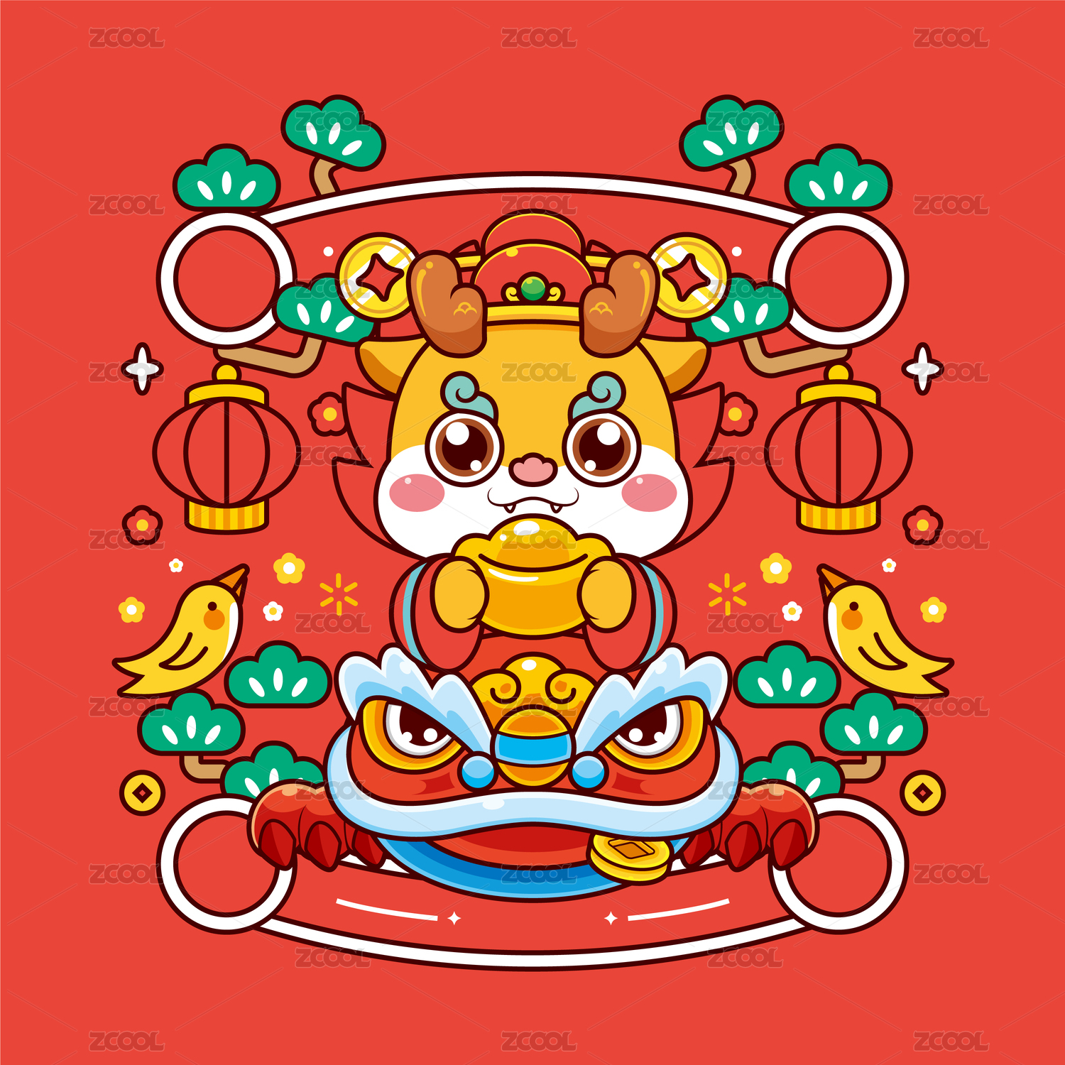 春节迎春新年吉祥贺岁龙年拜年卡通IP包装