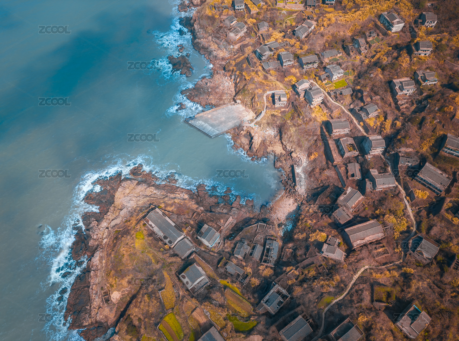 航拍浙江省嵊泗县嵊山镇无人村自然建筑风光