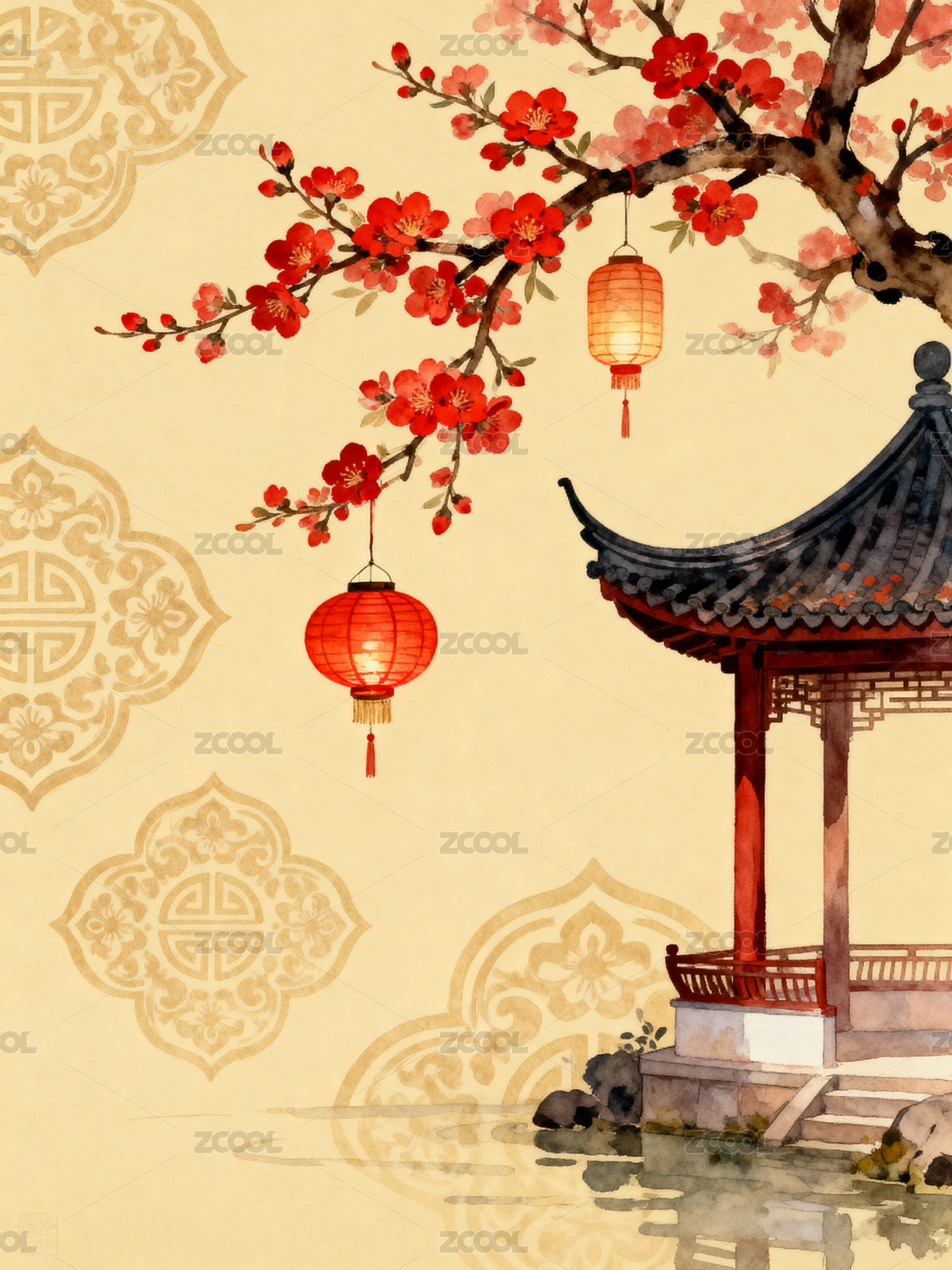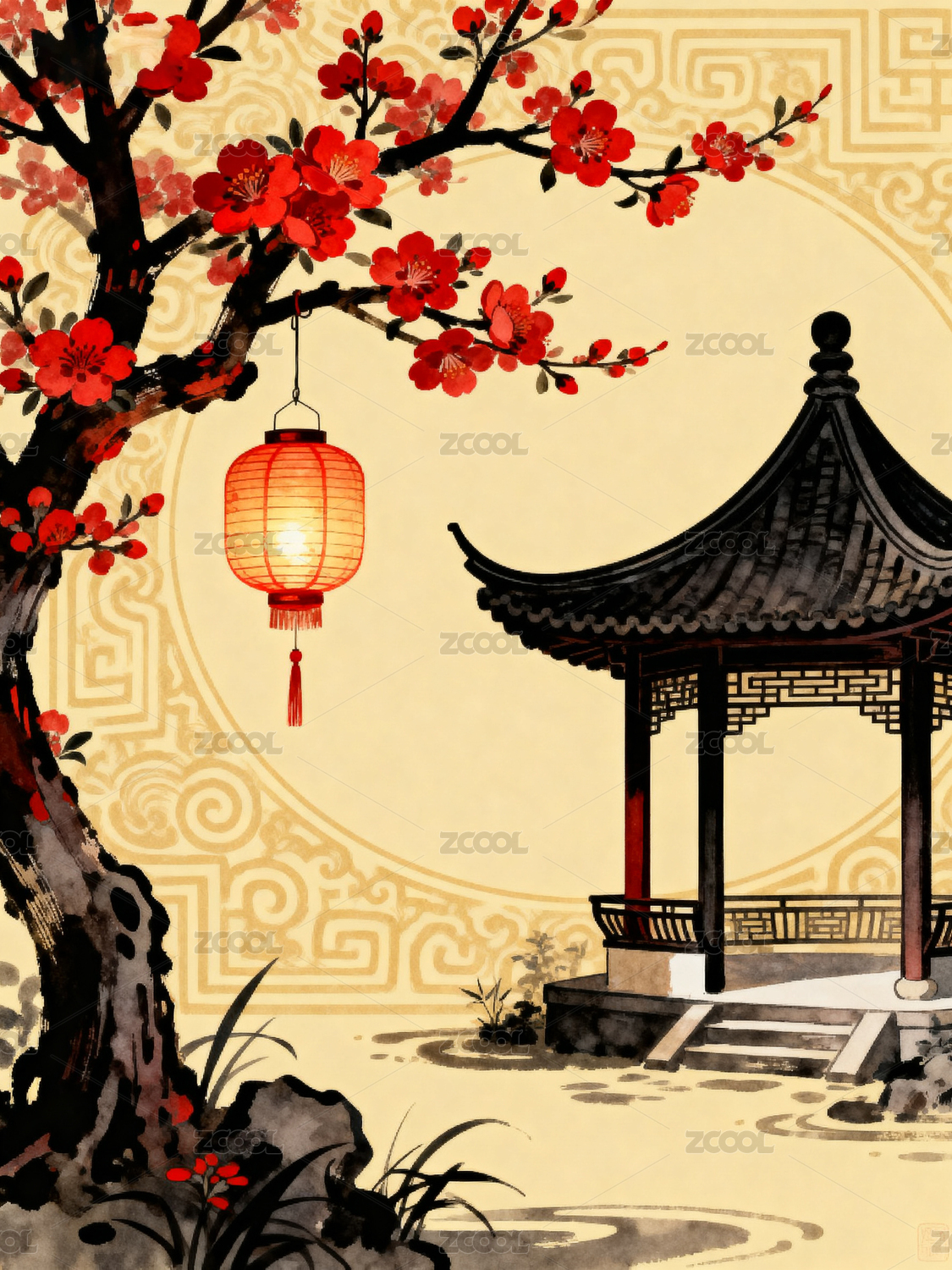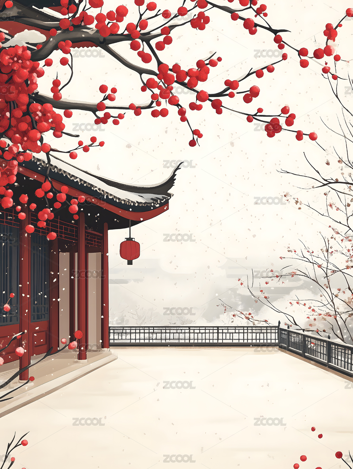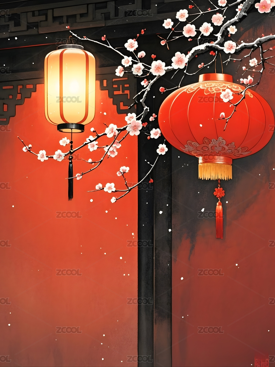 红灯笼,冬天,梅花,花,植物,大雪,小雪,冬至,节令,雪