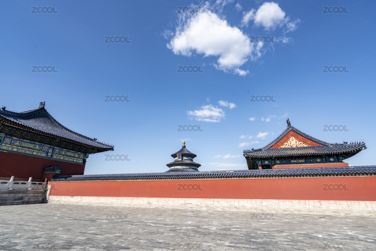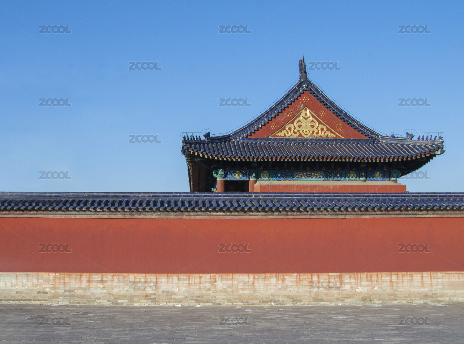 蓝天下天坛古建筑红墙背景
