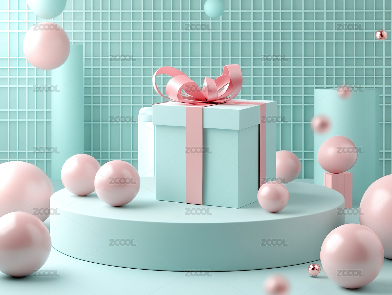 DXCZ202401,粉色,礼盒,礼物,圆球,横幅,浪漫,背景,促销