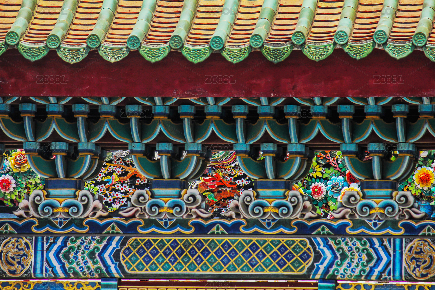 北京市地坛牌楼凤凰木雕图案园林建筑