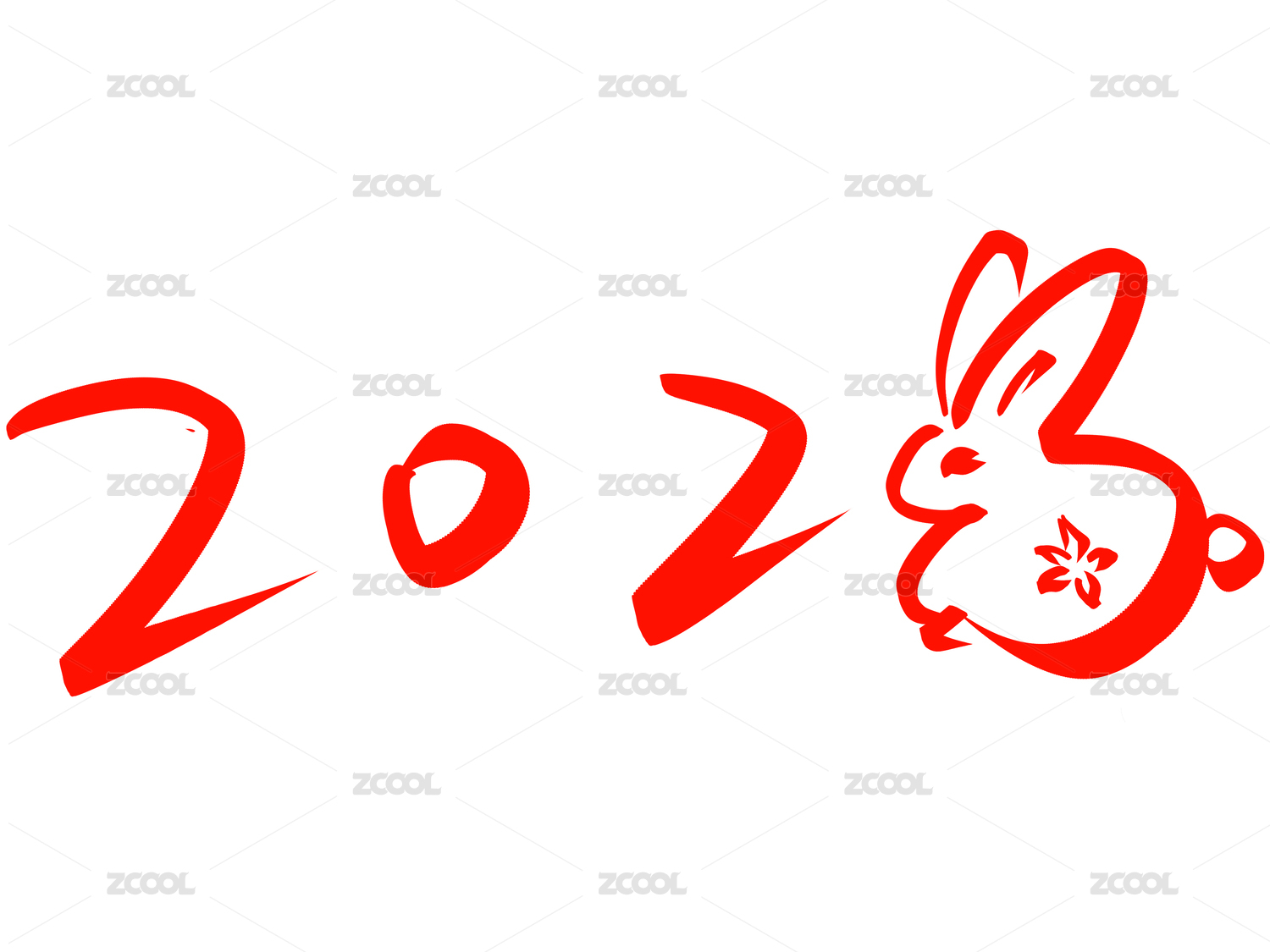 红黄,2023年,兔年,春节,艺术字,兔子,2023,卡通元素,素材,卡通