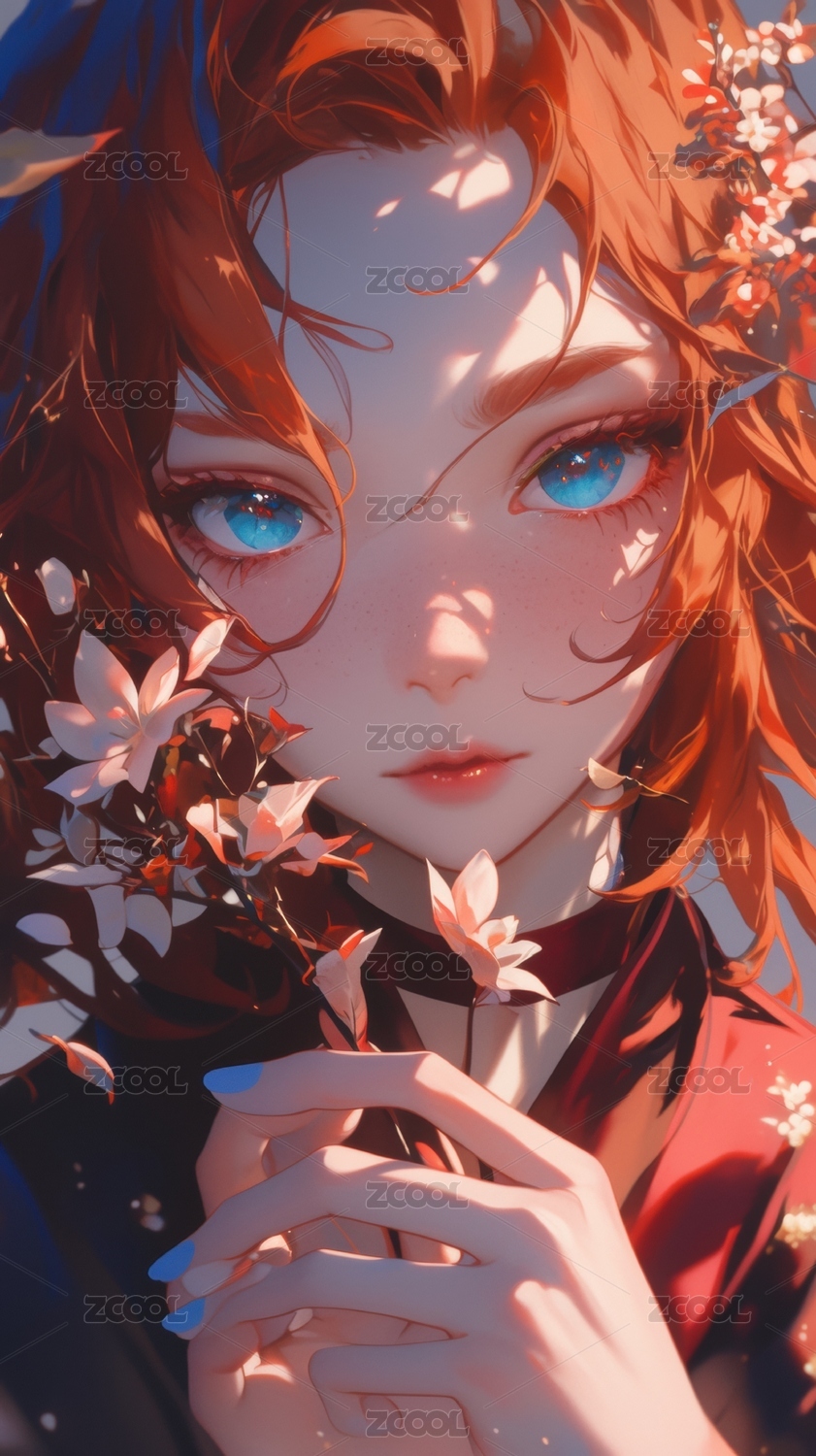 二次元,动漫,女孩,矩阵雨,红色短发,科学,女人,剪影,艺术,黑色