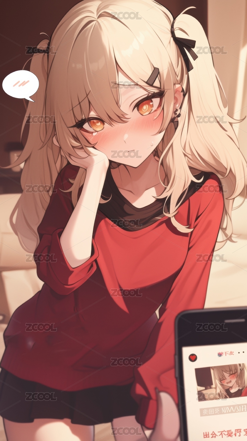 金发少女手持手机屏幕显示相似形象