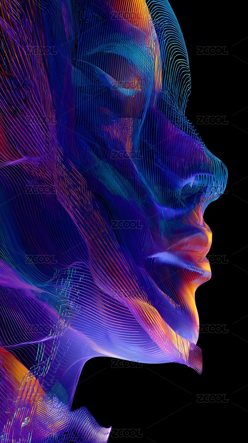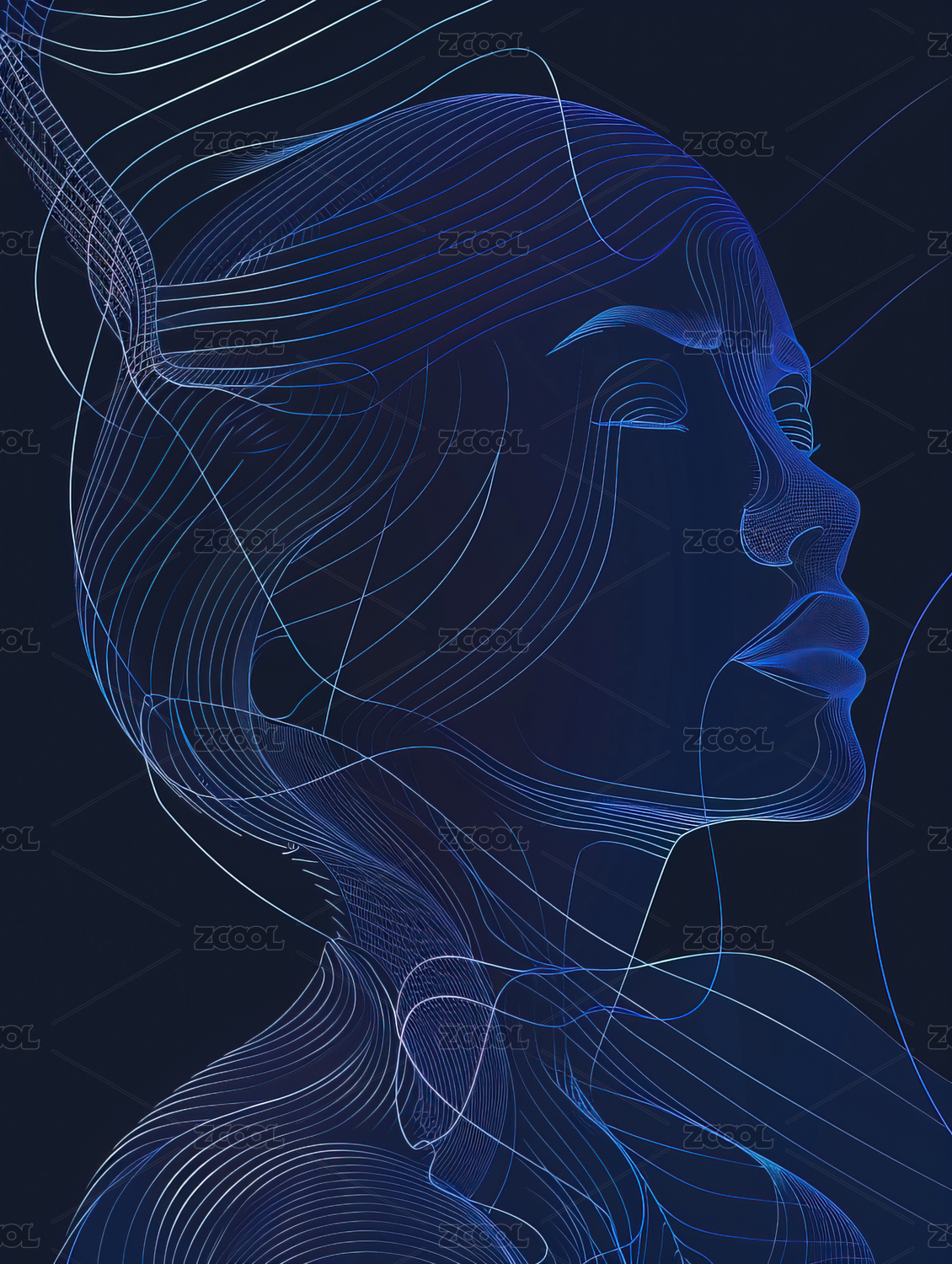 线框,人物,女人,头像,头部,肩部,头发,创新,抽象,插画