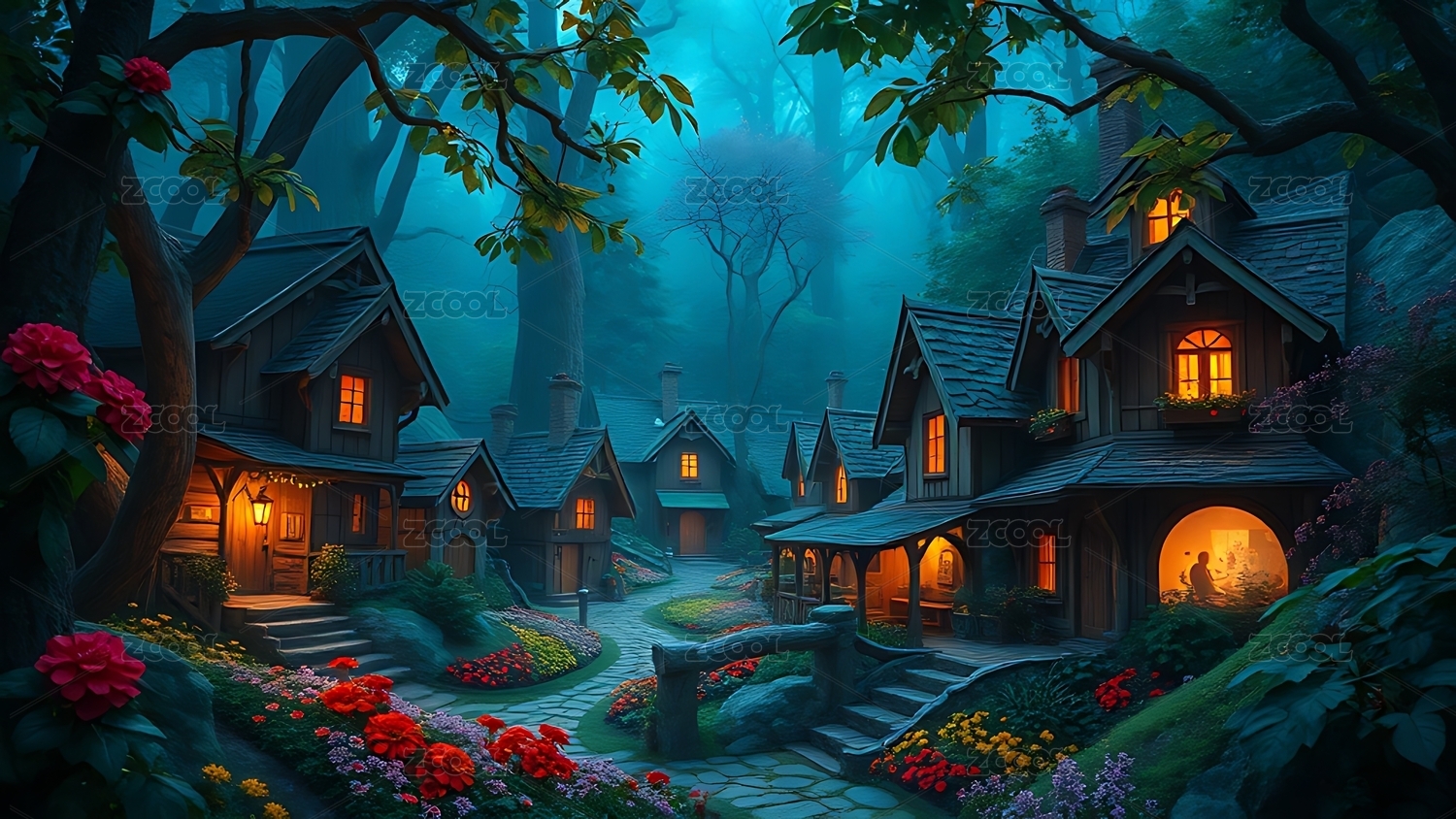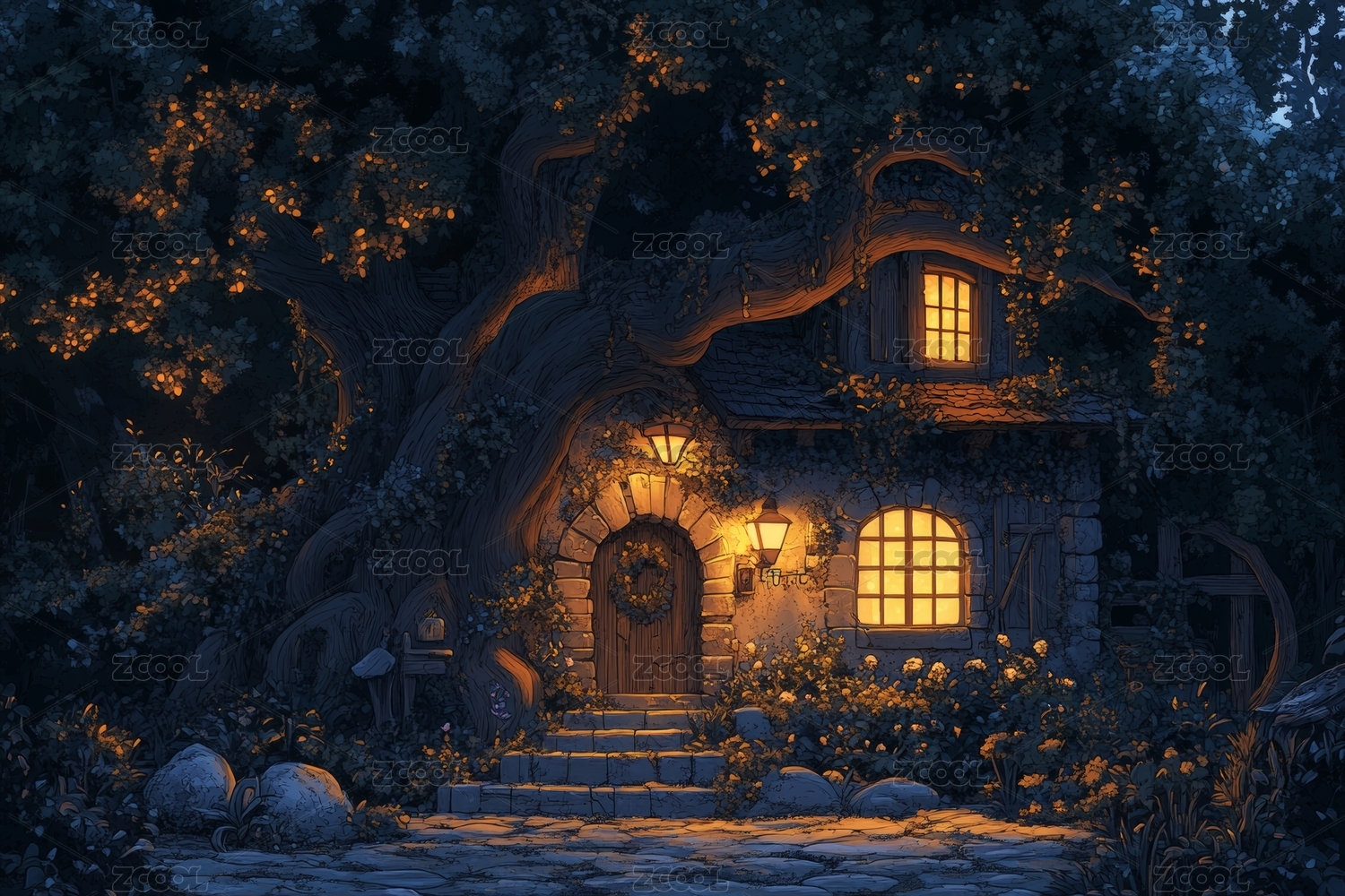 风格,小屋, 森林, 童话, 梦幻, 玫瑰花, 花园, 房屋, 建筑, 庭院