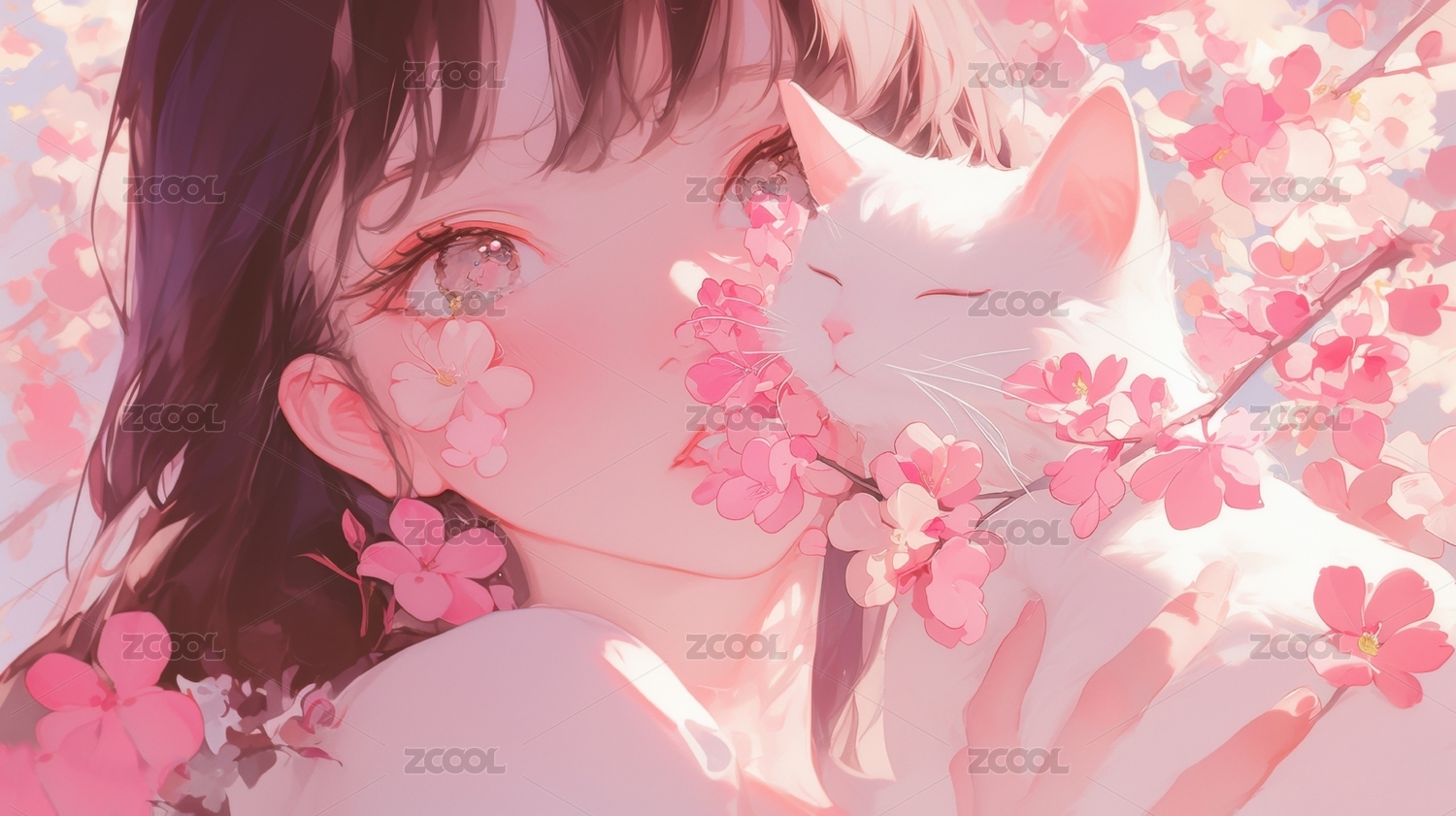 猫,插画,少女与猫,少女,可爱,梦幻,唯美,温馨,女孩
