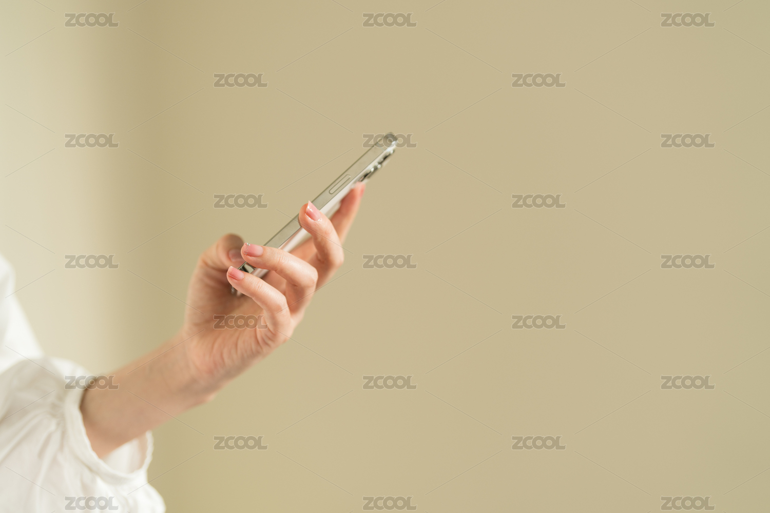 涂着粉色指甲油的手拿着手机