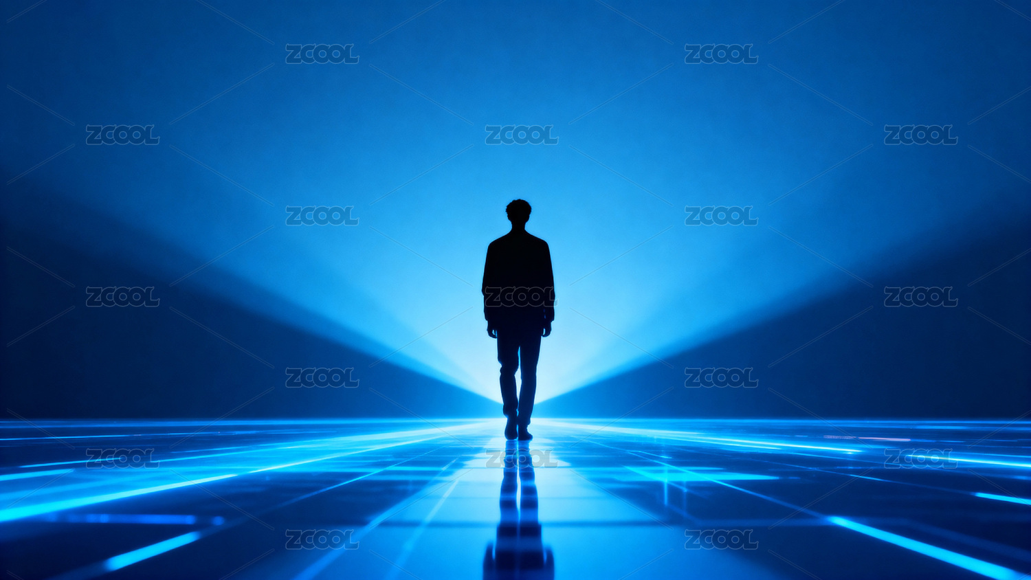 男人,背影,光线,蓝色,科技,未来,通道,前进,虚拟,空间