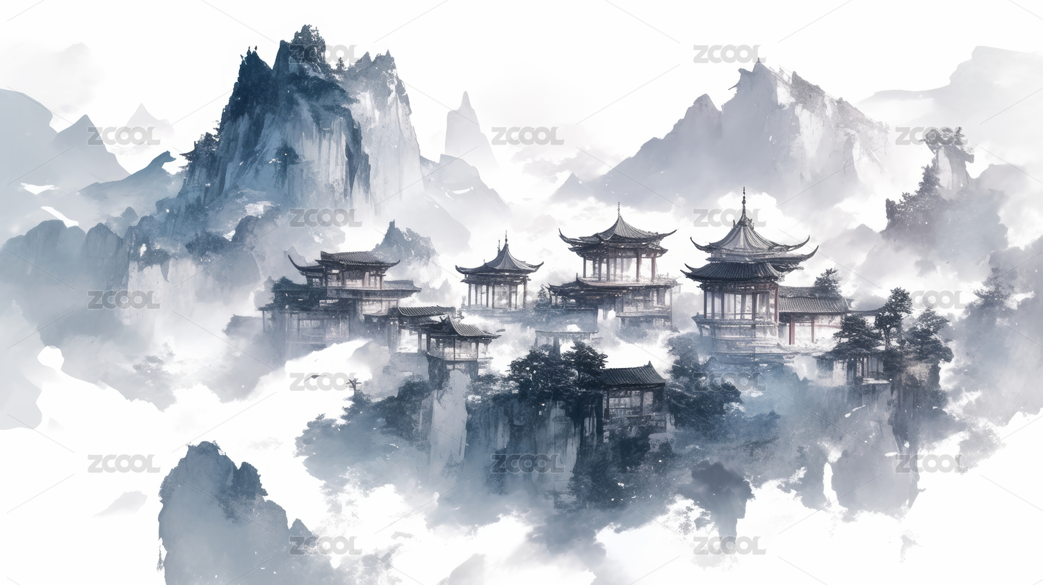 天庭,天宫,传说,仙境,祥云,建筑,云雾,雾气,幻想,云霄