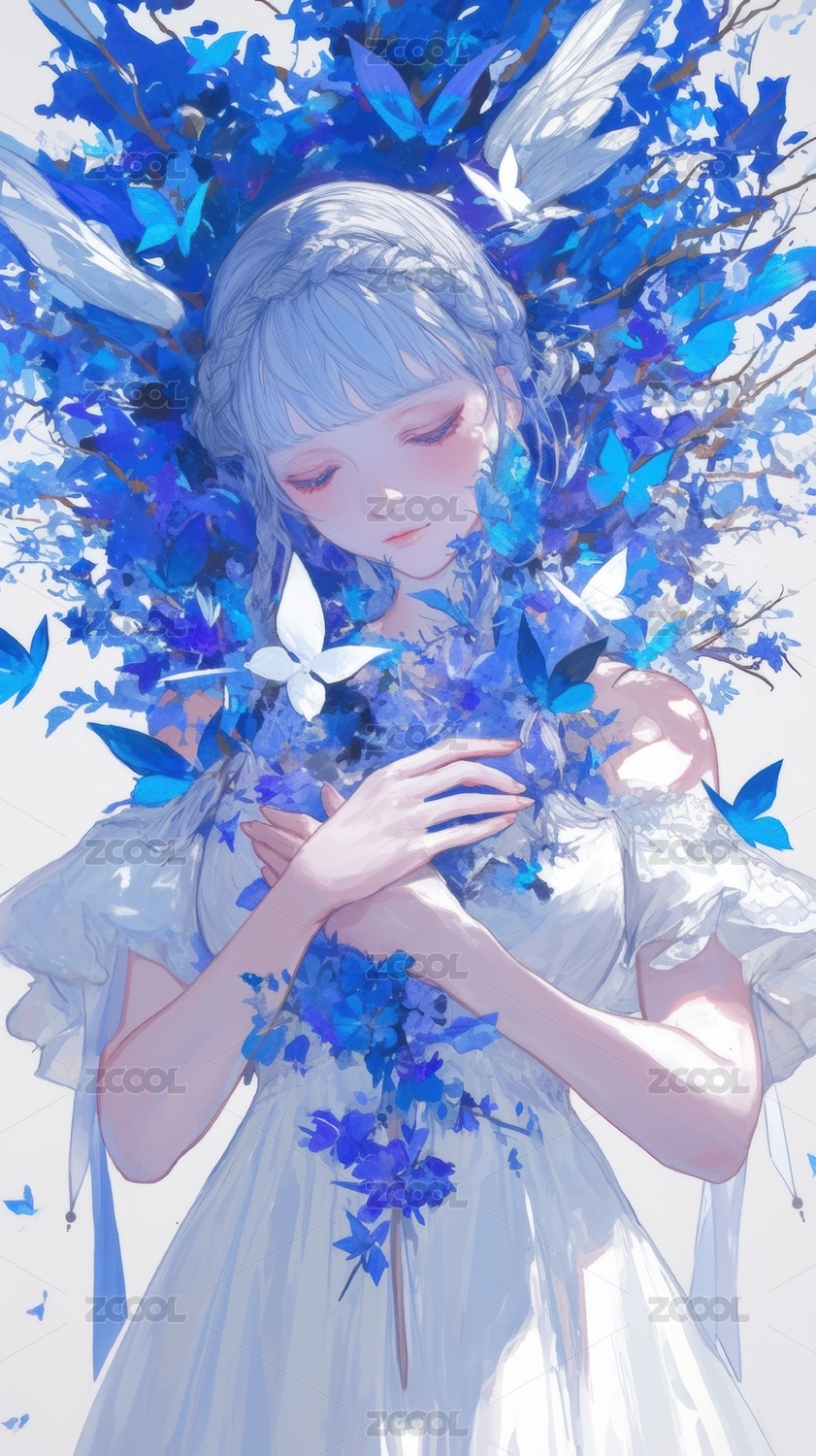 蓝蝶环绕的梦幻少女