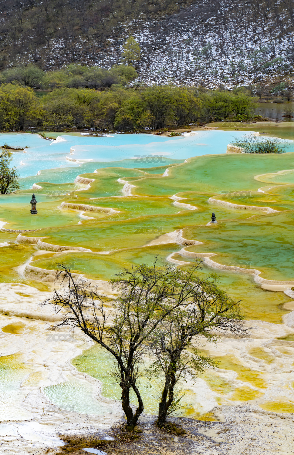 黄龙,五彩池,自然,风景区,四川省,阿坝,藏族,羌族,自治州,钙化池