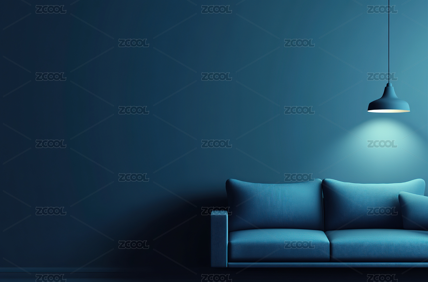 蓝色墙壁上的空沙发